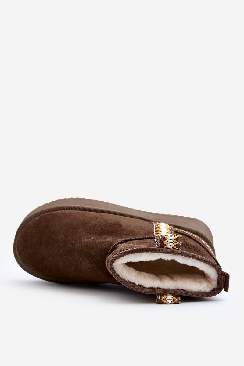 Platformové snehule sú najmodernejší strih tejto sezóny! Tento model je vyrobený z eko semišu. Hrubá podrážka z gumového materiálu skvele izoluje od chladného povrchu. Členok je zdobený aztéckym vzorom. Vnútro je vyložené kožušinou. Určite si ich musíš mať! Při výběru velikosti se řiďte tabulkou velikostí.