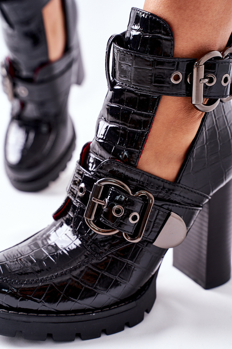 Čierne lakované topánky sú hitom tejto sezóny! Pripevnené prackou. Vysoký príspevok zabezpečí pohodlie používania. Pri výbere veľkosti postupujte podľa tabuľky veľkosti.