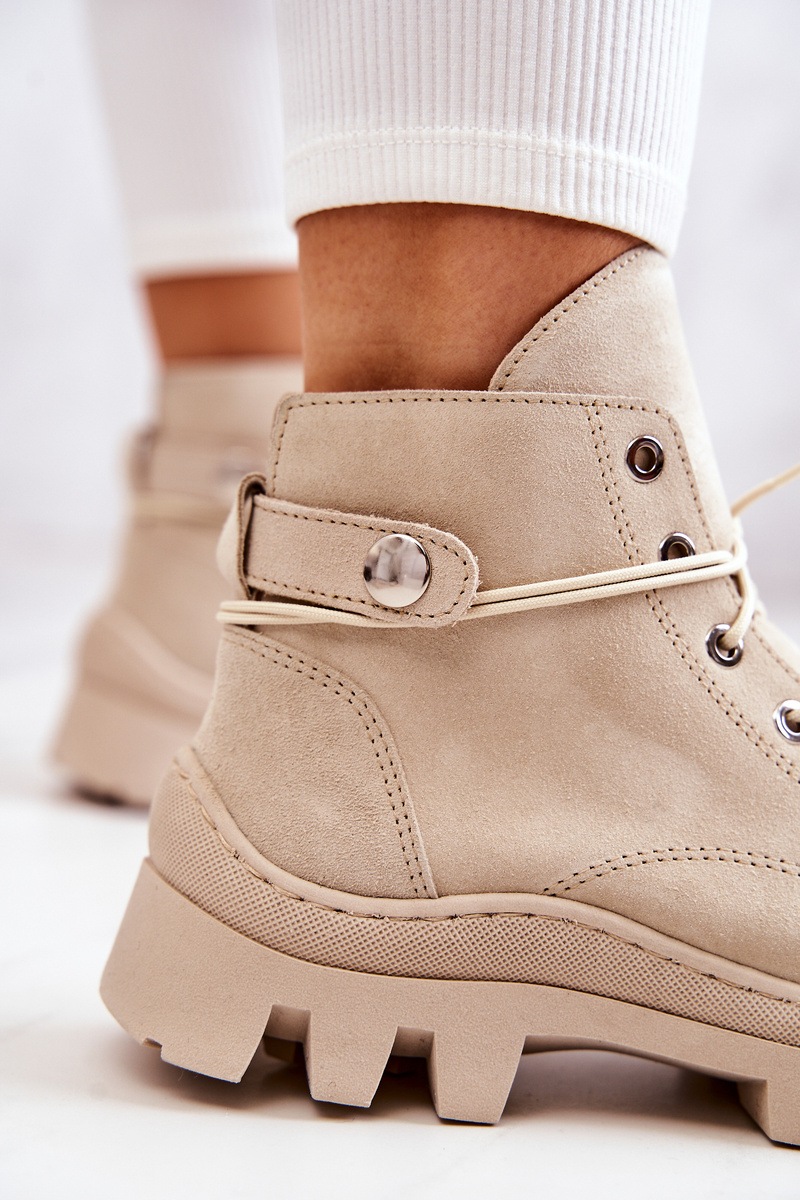 Čižmy boli vyrobené z prírodnej semišovej kože. Majú klasickú väzbu, ktorá vám umožní prispôsobiť sa topánke, aby ste natiahli nohu. Podrážka pasce je vynikajúca pre nerovnomerné povrchy. Vložka je vyrobená z prírodnej kože. Čižmy majú vzadu pripevnený popruh, ktorý je možné oddeliť. Pri výbere veľkosti navrhnite tabuľku veľkosti.