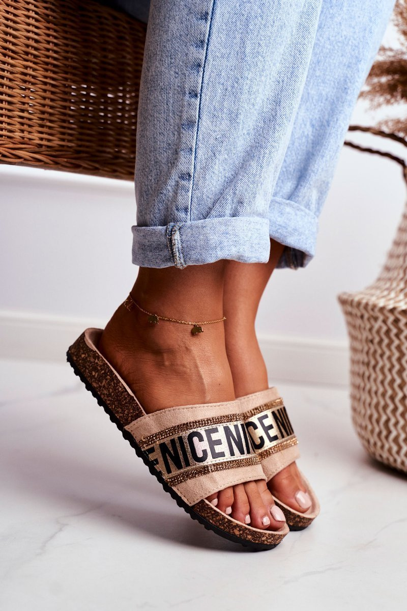 Pohodlné dámske papuče na korkovej podrážke. Topánky sú vyrobené z ekologického semišu, majú mierne profilovanú vložku. Móda módy so zirkónmi bude diverzifikovať váš šatník!
