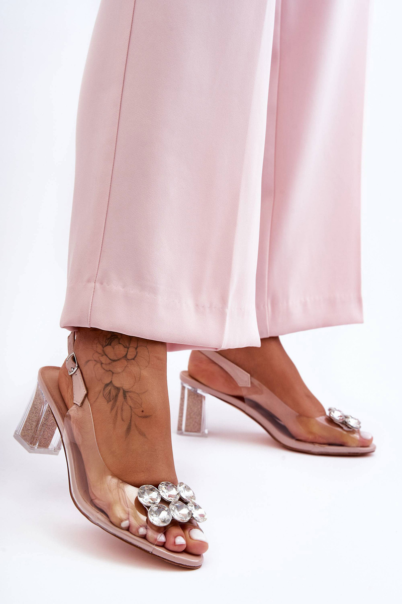 Transparentné sandále s ružovými s vysokými podpätkami S.Barski MR1037-43