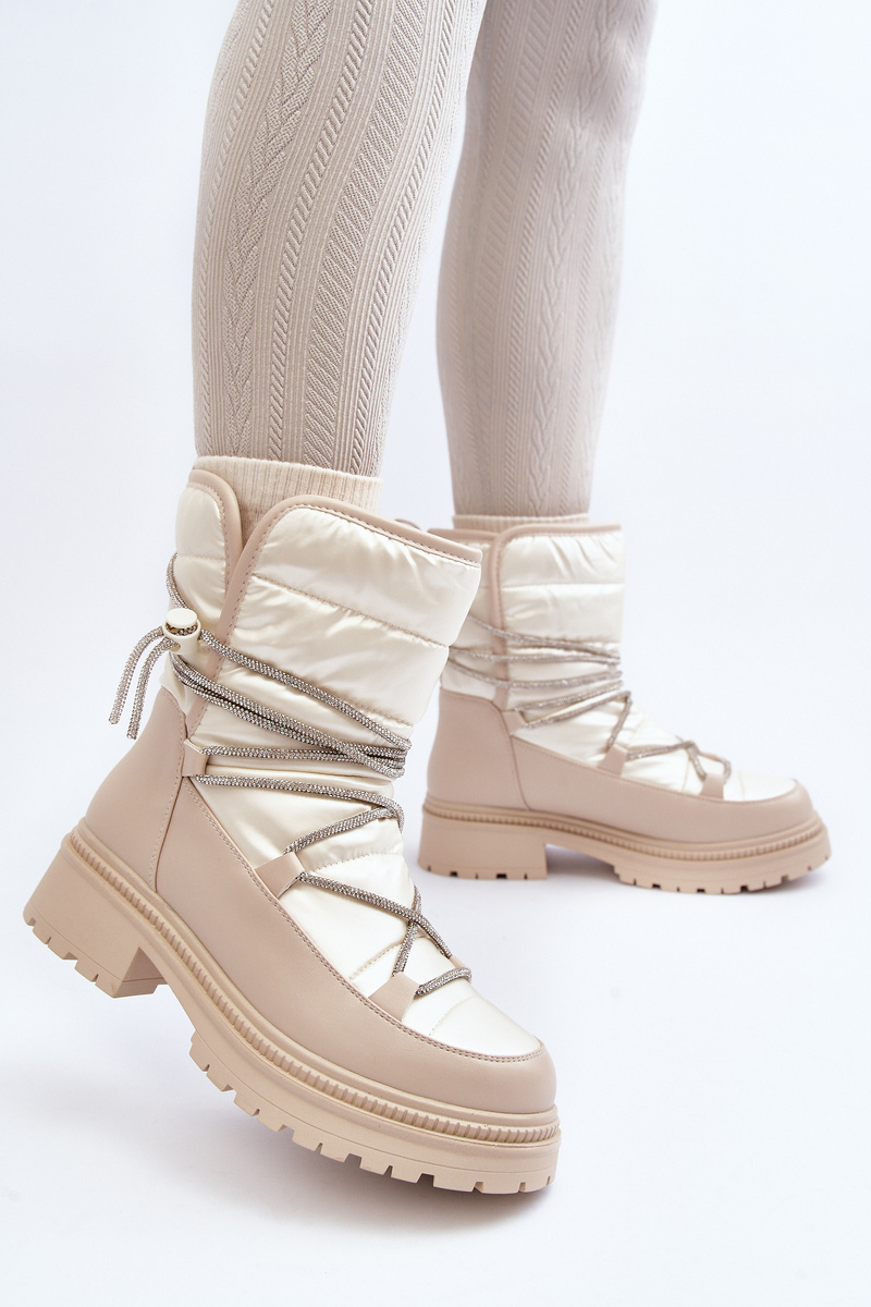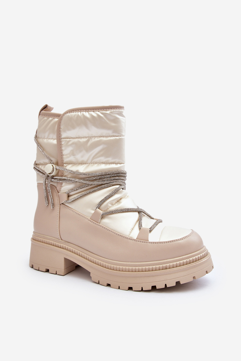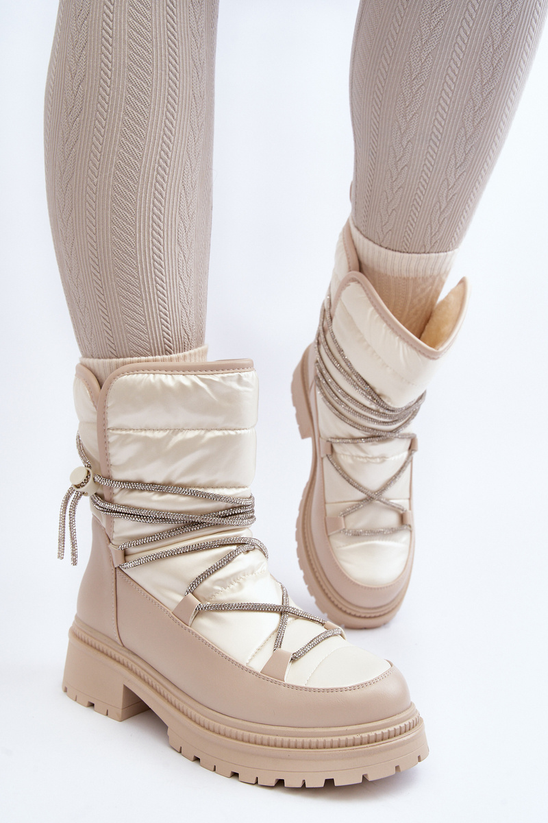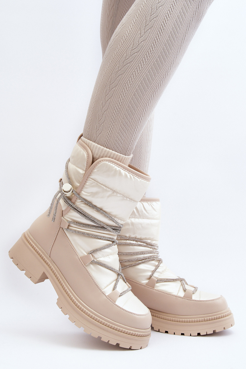 Dámske snehule vyrobené z materiálov, ktoré účinne chránia pred zimou. Osadené na hrubej podrážke a plochom opätku. Chrbát zdobený lesklým viazaním. Model na zasúvanie. Zaoblené špičky. Vnútro zateplené hrubým kožušinou. Okrem toho je pätka zpevnená. Určite by ste ich mali mať! Při výběru velikosti se řiďte tabulkou velikostí.