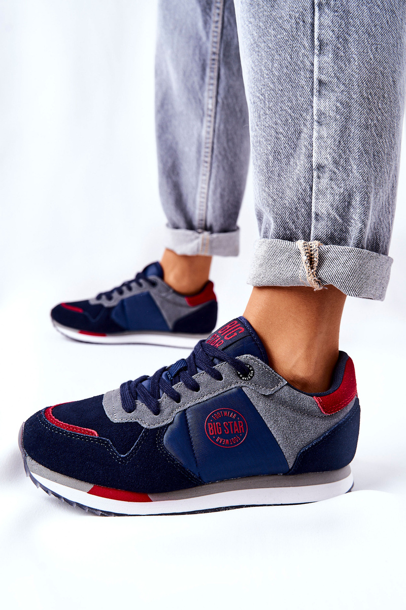Dámske športové topánky z poľskej značky Big Star. Topánky na vrchu boli vyrobené zo semišového a textilného materiálu. Majú podrážky, ktoré nie sú v oblasti, a platforma, ktorá dokonale odpisuje každý krok. Nezabudnite skontrolovať našu kolekciu Big Star Sports Shoes! Pri výbere veľkosti navrhnite tabuľku veľkosti.
