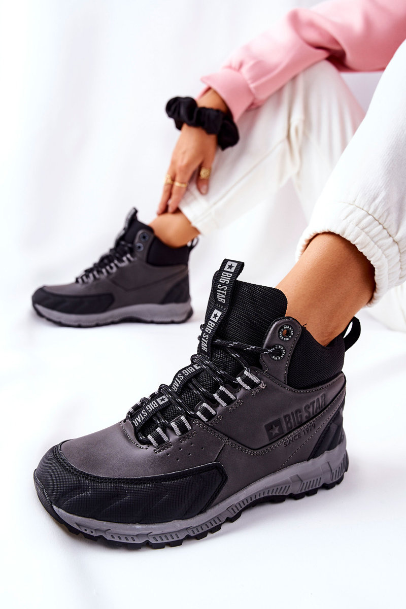Dámske trekkingové topánky od poľskej značky Big Star. Topánky boli vyrobené z ekologickej kože a textilného materiálu. Topánky majú podrážku. Na strane topánky je lisované logo Big Star. Majú puto. Nezabudnite skontrolovať našu kolekciu veľkých hviezd. Pri výbere veľkosti navrhnite tabuľku veľkosti.