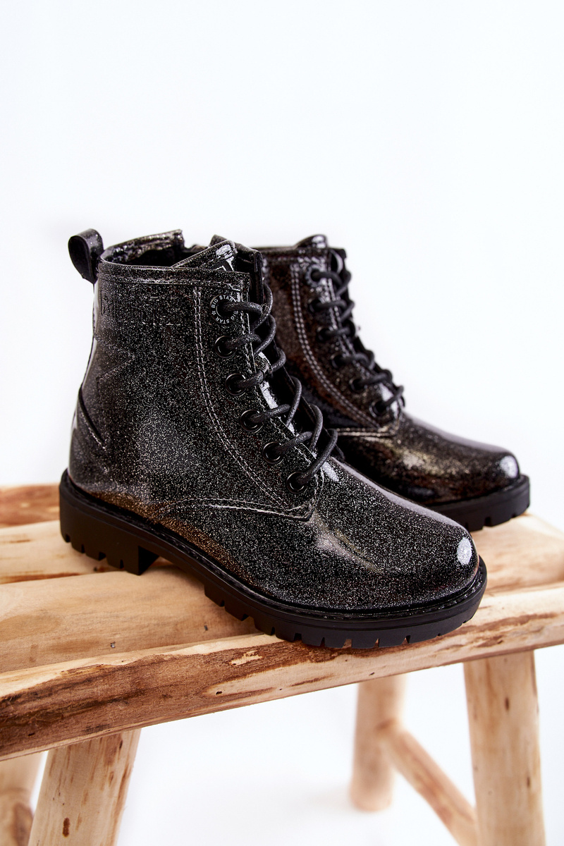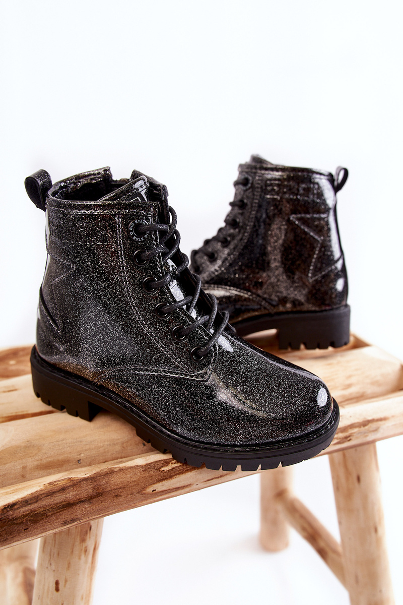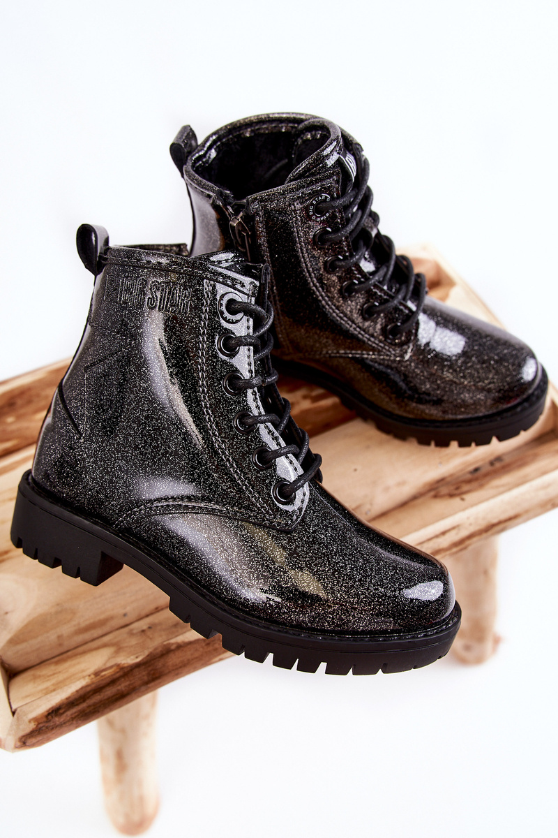 Veľká hviezda II374047 Čierne a strieborné detské vakitované topánky