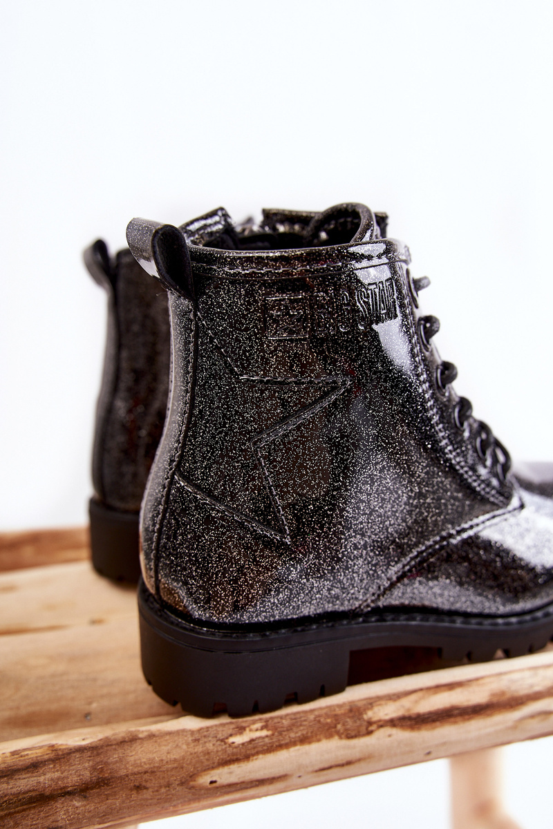 Úžasné, detské topánky od značky Big Star. Topánky boli vyrobené z vysoko kvalitnej ekologickej kože. Prispôsobenie na nohu poskytne pevné šnurovanie a posúvač na boku hornej časti. Topánky majú izoláciu vo forme jemnej obuvi. Počas používania po celý deň sú mimoriadne pohodlné. Vyšívaná hviezda zdobí stranu hornej časti. Topánky boli umiestnené na plochej päte s behúňom. Pri výbere veľkosti navrhnite tabuľku veľkosti. /34-22/35-23 cm.
