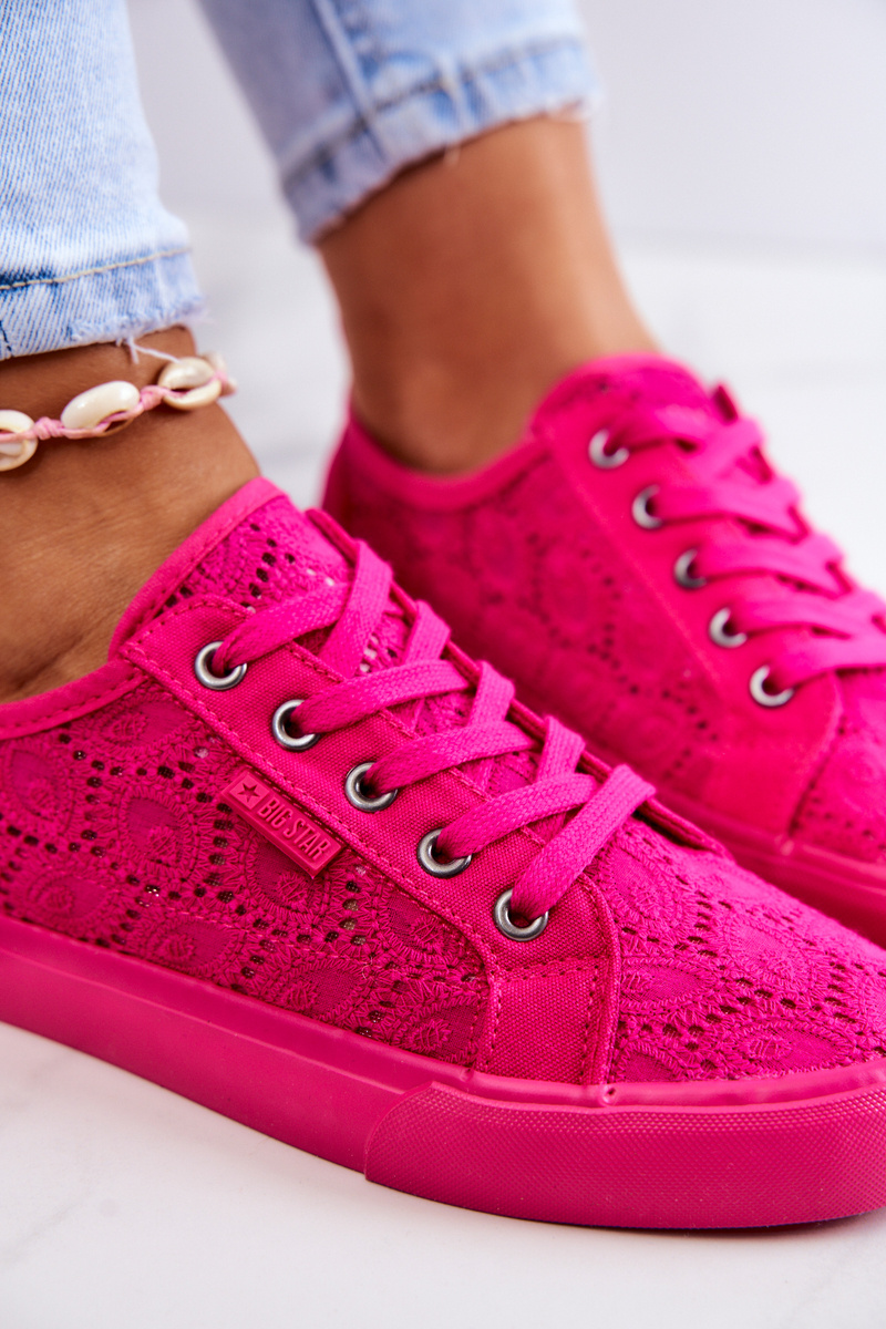 Úžasné ženské tenisky s veľkou hviezdou. Tenisky sú vyrobené z textilného materiálu s otvoreným vzorom. Majú nekvalifikovanú podrážku. Mäkká vložka poskytne pohodlie pri nosení. Majú klasickú väzbu. Na boku sa objaví strana značky veľkej hviezdy. Tento model sa dobre hodí v jarnej a letnej sezóne, takže by ste ho mali mať! Model je k dispozícii aj v detskej verzii! Pri výbere veľkosti, navrhnite tabuľku veľkosti.