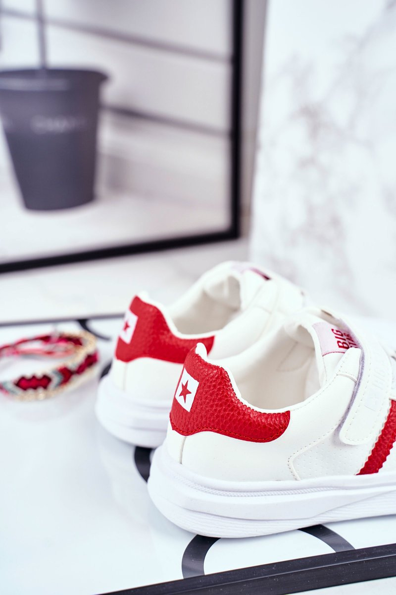 Veľká športová topánky veľkej hviezdy. Vyrobené výlučne z ekologickej kože. Vďaka módnemu dizajnu vyzerajú skvele pri každom štylizácii. Pripevnené pomocou suchého zipsu, ktorý uľahčí obliekanie, majú tiež pružné gumy napodobňujúce šnúrky. Topánky vytvorené pre našich najmladších módnych fanúšikov. Ľahké a pohodlné, potrebujete niečo viac? Pri výbere veľkosti navrhnite tabuľku veľkosti.