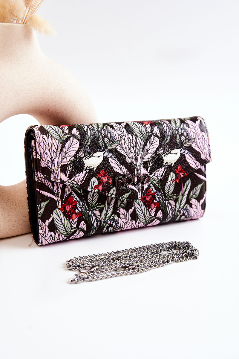 Veľká dámska peňaženka pripevnená magnetom. Bola vyrobená z vysoko kvalitnej ekologickej kože s ohľadom na detail. Nobo logo na klapke. Vo vnútri sú tri komory - dve majú miesta pre vizitky alebo platobné karty a bankovky a jedna je pripevnená zipsom. Okrem toho je k peňaženke pripevnená kovová reťazec, takže ju môžete nosiť aj ako kabelku. Toto je skvelé riešenie, keď potrebujete mať iba tie najuznávanejšie veci, ako sú dokumenty, peniaze alebo smartphone.