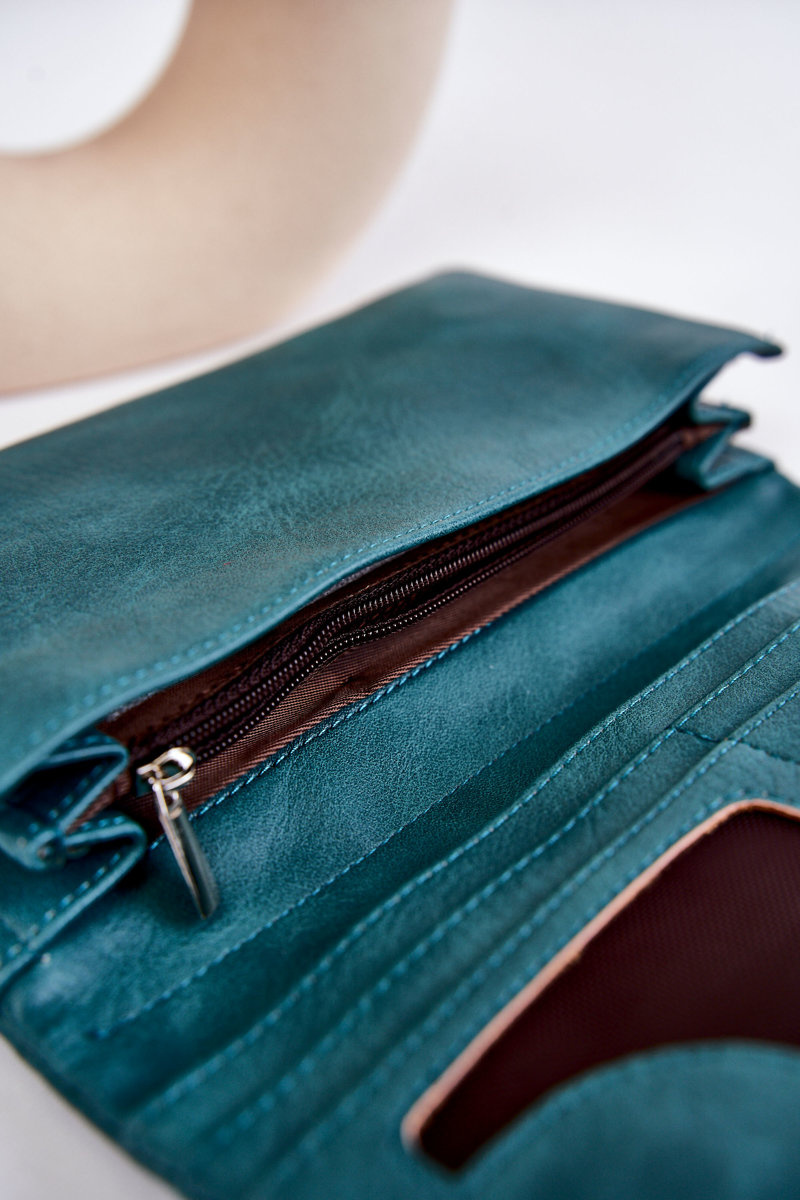 Klasická, veľká dámska peňaženka bola vyrobená z ekologickej kože. Uzavreté magnetom. Komora má otvorené vrecká a jedno uzavreté zipsom. Peňaženka navyše obsahuje priestor pre vizitky, identifikačné karty a miesto pre fotografiu. Vrecká v klapke a vzadu sú uzavreté zipsom.