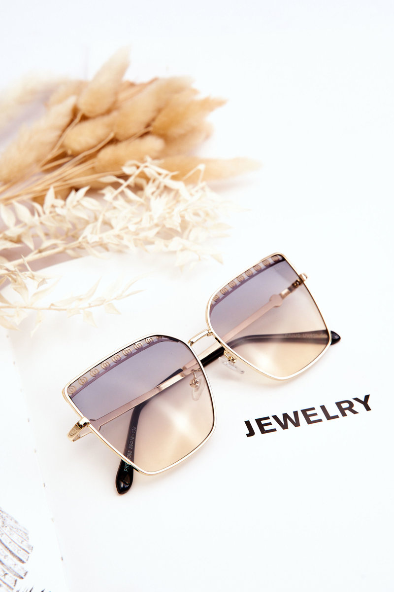 Unikátne slnečné okuliare boli vyrobené z plastového a kovového pripojenia. Model v štýle motýľa s krásnou dekoráciou zvnútra na vrchu objektívu. Okresy majú navyše tenké rámy a chrámy. Silikónové prsty vám umožnia správne namontovať okuliare. Informácie od výrobcu: UV 400, kategória 3.