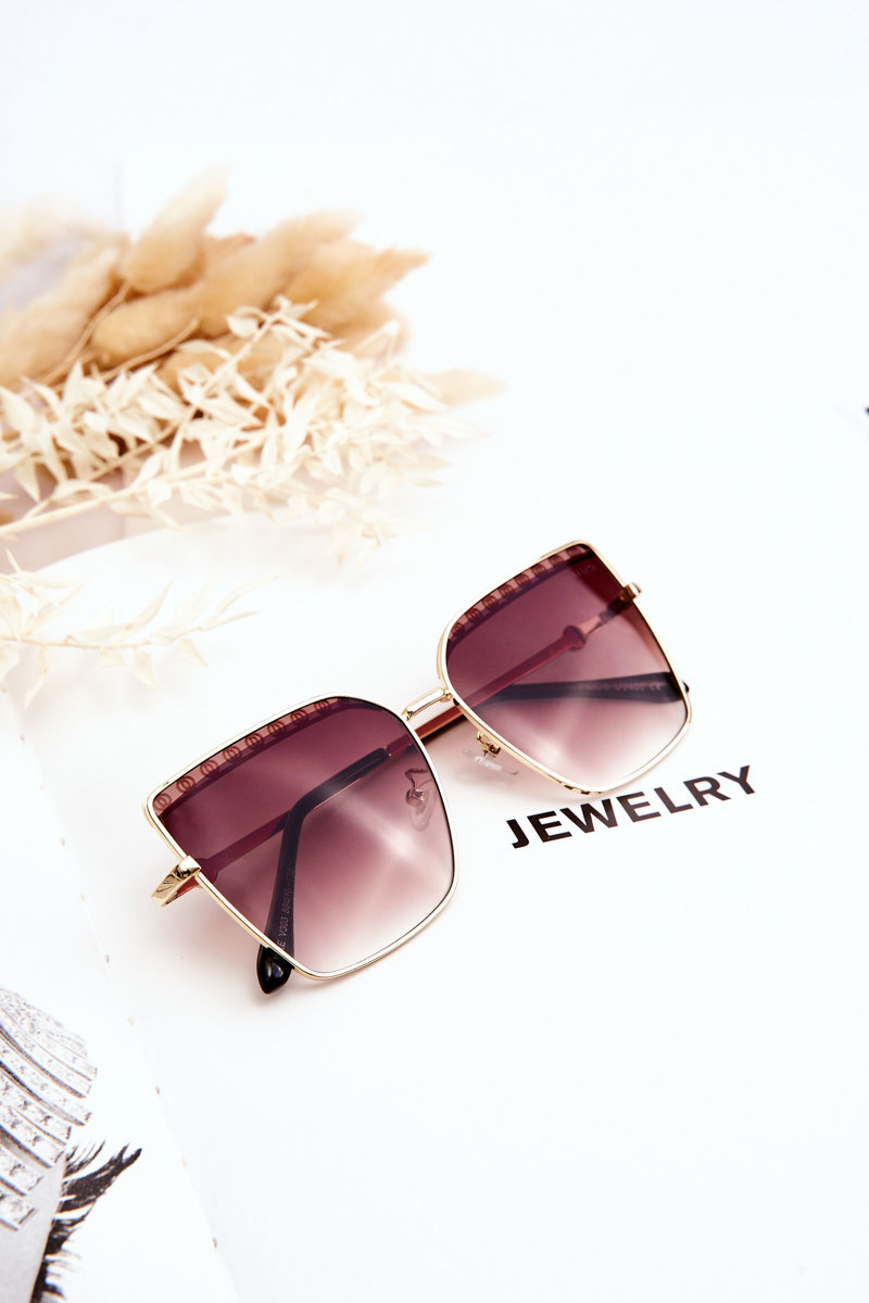 Unikátne slnečné okuliare boli vyrobené z plastového a kovového pripojenia. Model v štýle motýľa s krásnou dekoráciou zvnútra na vrchu objektívu. Okresy majú navyše tenké rámy a chrámy. Silikónové prsty vám umožnia správne namontovať okuliare. Informácie od výrobcu: UV 400, kategória 3.