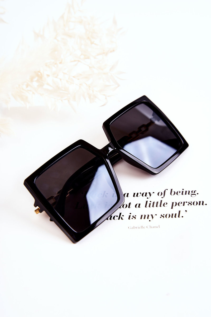 Veľké štvorcové slnečné okuliare V130043 Čierne a zlato