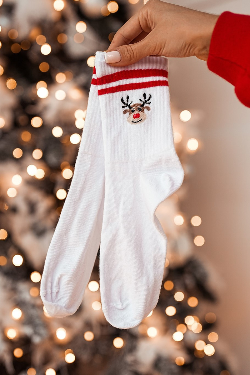 Vianočné ponožky sob pruhované s pruhmi biele