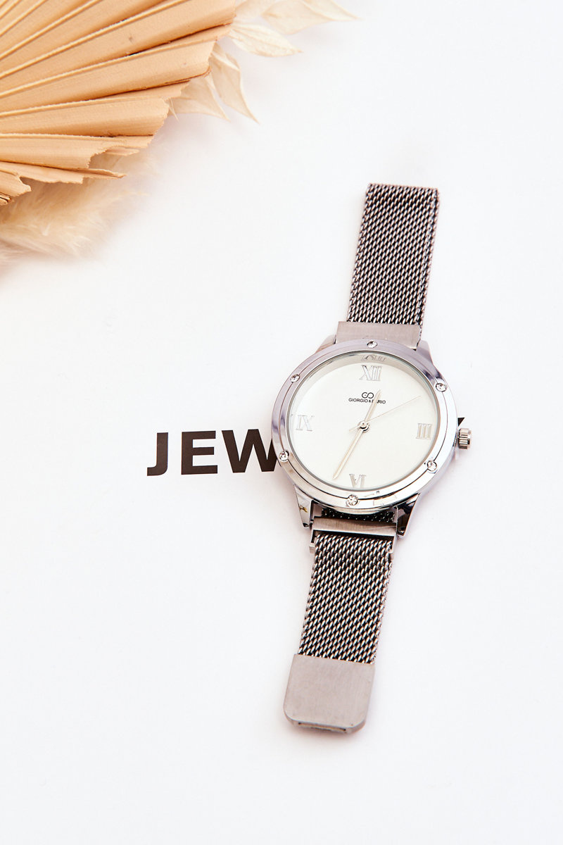 Dámske hodinky boli vyrobené z nehrdzavejúcej ocele. Náramok zo sieťoviny je mimoriadne funkčný, pretože sa zhoduje s rôznymi šírkami zápästia. Môžete ho prispôsobiť svojim vlastným potrebám upevnením magnetu. Obálka má dekoratívne kamienky napodobňujúce kamienky. Na štíte sú rímske čísla. Tieto hodinky majú okrem toho triedu tesnosti WR30M.
