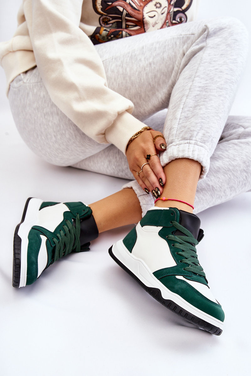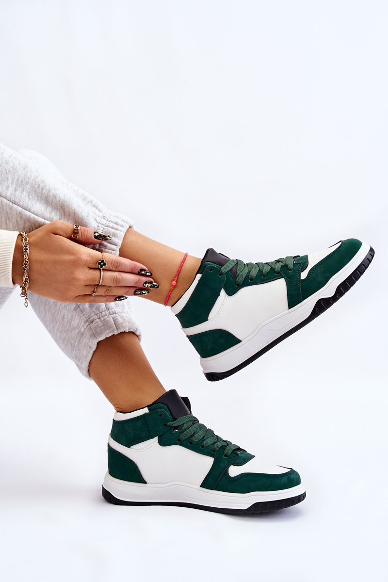 Vysoké dámske športové topánky majú jemnú platformu. Vyrobené z ekologickej kože. Vysoký zvršok a plochá podrážka dokonale stabilizuje nohu. Eco kožená vložka a zaoblený nos zaistia pohodlie počas používania. Klasicky šnurovaný model. Nezabudnite skontrolovať ďalšie modely športovej obuvi! Pri výbere veľkosti postupujte podľa tabuľky veľkosti.