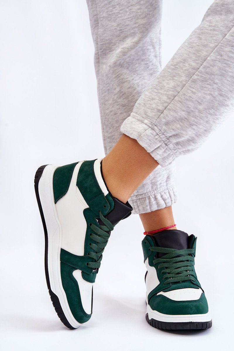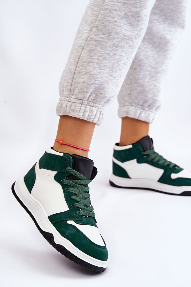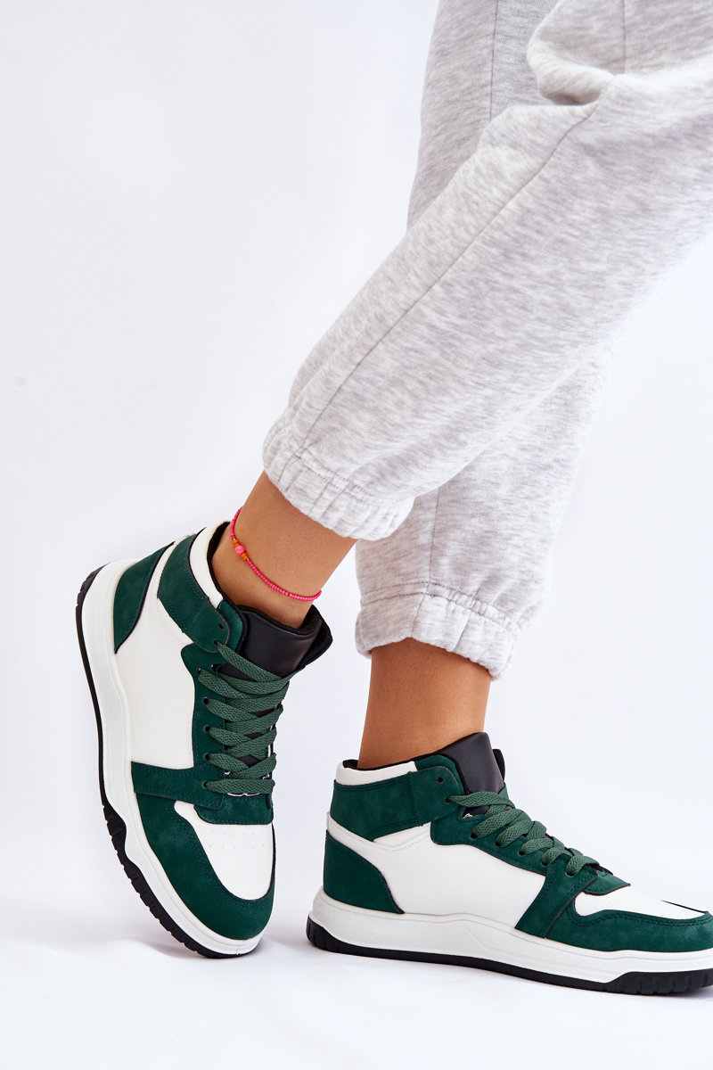 Vysoké dámske športové topánky, biele a zelené tenisky povesti