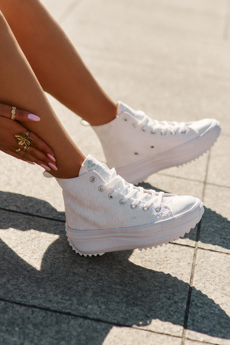 Vysoké dámske tenisky značky Lee Cooper kombinujú komfort a módny dizajn. Umiestnené na platforme, poskytujú stabilitu a ľahkosť, ideálne na každodenné štýly. Zvršok zdobený jemnou výšivkou dodáva jedinečný charakter. Klasické šnurovanie umožňuje jednoduché prispôsobenie nohe a celkový vzhľad vytvára štýlový, moderný vzhľad. Tieto tenisky budú vynikajúcou voľbou na voľnočasové, mestské outfity. Při výběru velikosti se řiďte tabulkou velikostí.