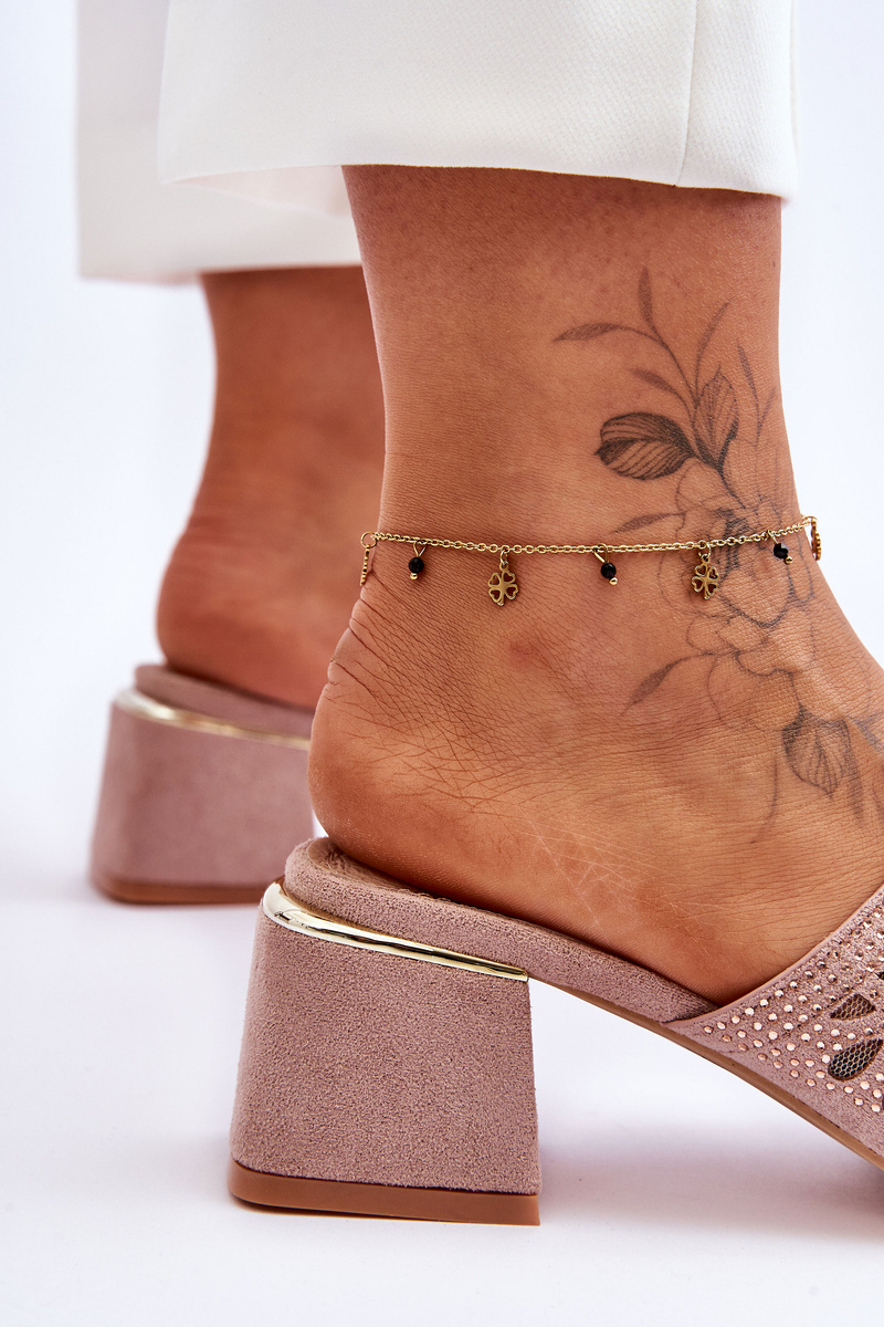 Elegantné žabky žien boli vyrobené z kombinovaného materiálu vo forme oka a ekologického semišu. Tento model má trysky a otvorené kvety. Mäkká vložka vyrobená z prírodnej kože zabezpečí pohodlné použitie. Klapky sú vložené na päty vo forme bloku. Perfektný model pre teplejšie dni! Pri výbere veľkosti postupujte podľa tabuľky veľkosti.