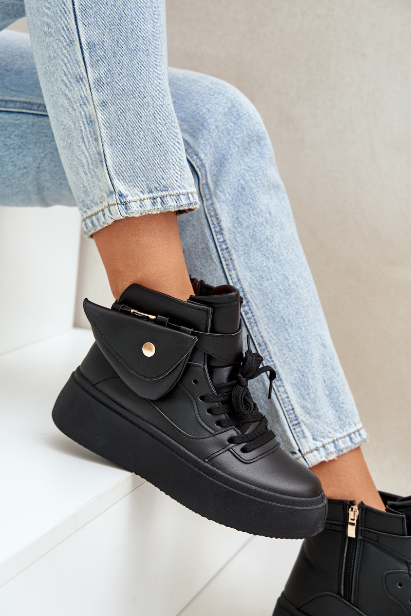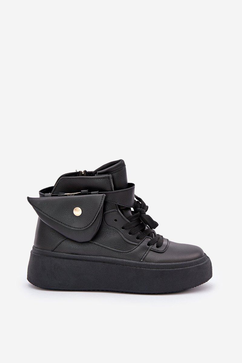 Vysoké dámske tenisky vyrobené z kvalitnej ekologickej kože kombinujú moderný štýl a pohodlie. Umiestnené na masívnej platforme, poskytujú pohodlie pri nosení a dodatočné tlmenie. Zvršok bol obohatený o malú odnímateľnú taštičku, ktorá dodáva originálny charakter. Model sa vyznačuje zaoblenými špičkami a klasickým šnurovaním, ktoré umožňuje dokonalé prispôsobenie nohe. Tenisky sa skvele hodia ako súčasť mestských štýlov, dodávajúc im módny, streetwearový výraz. Ideálna voľba pre ženy, ktoré si cenia funkčnosť a neobvyklý dizajn! Při výběru velikosti se řiďte tabulkou velikostí.