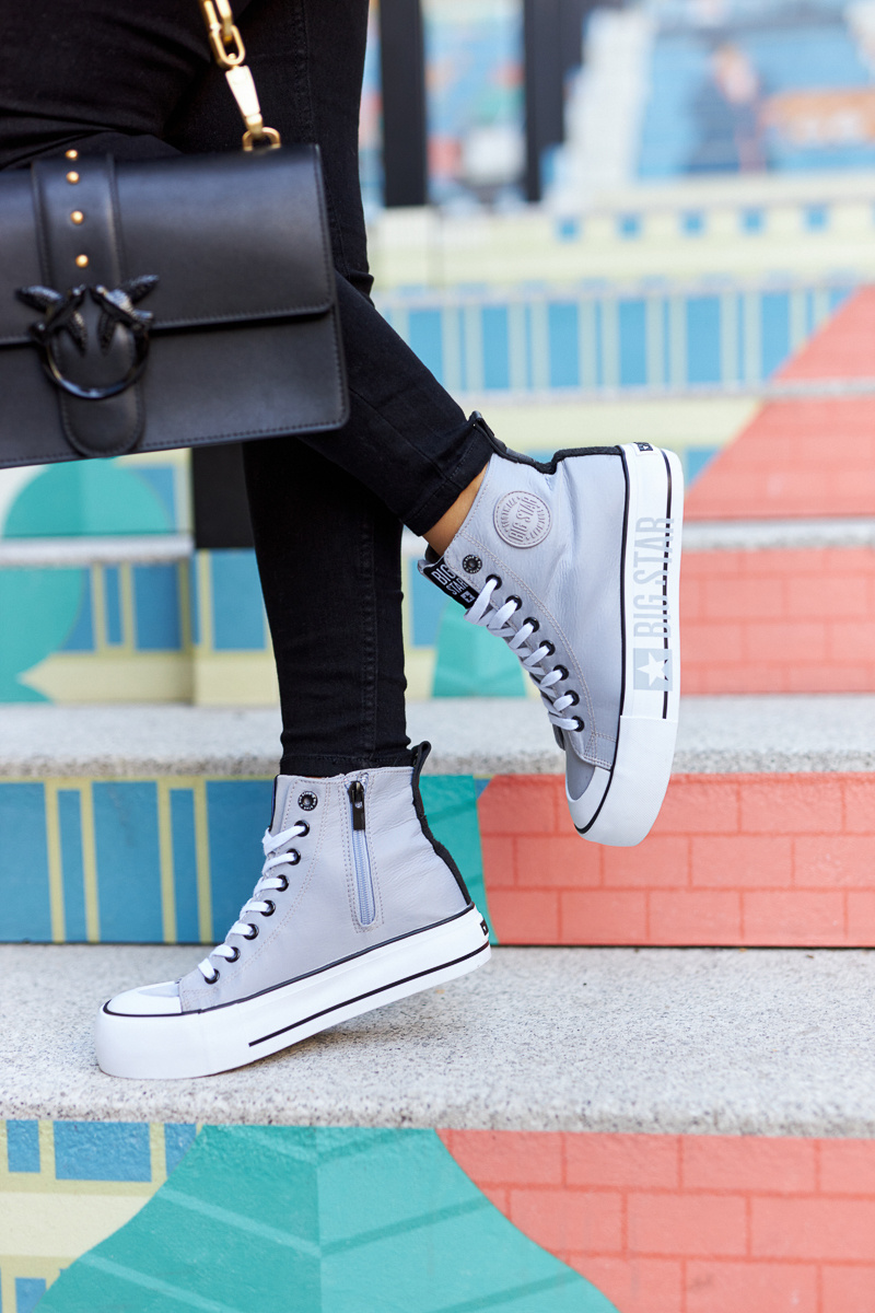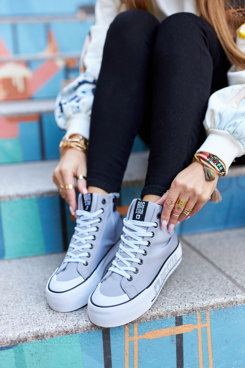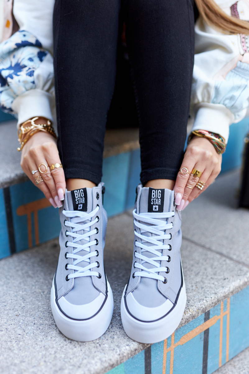 Dámske tenisky poľskej značky Big Star. Ikonické tenisky sa hodia do mnohých štýlov. Topánky sa dobre prispôsobujú tvaru chodidla, majú mäkkú, materiálovú vložku a podrážku nekrip. Sú vyrobené z tkaniny rezistentnej na nečistoty. Nezabudnite skontrolovať našu kolekciu veľkých hviezd. Pri výbere veľkosti navrhnite tabuľku veľkosti.