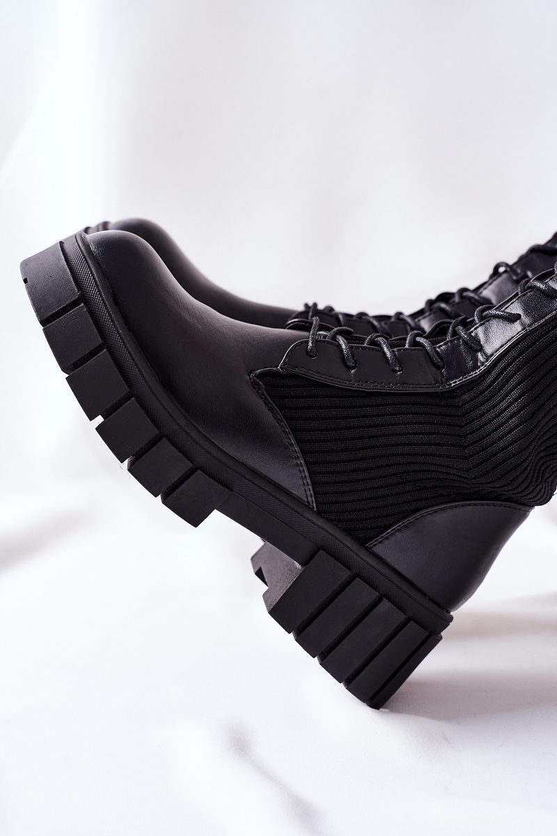Vysoké čipky. Zvršok vo forme ponožky. Ak sa pozrieme okolo celej dĺžky, zaistí primeranú prispôsobenie sa nohe. Pri výbere veľkosti navrhnite tabuľku veľkosti.