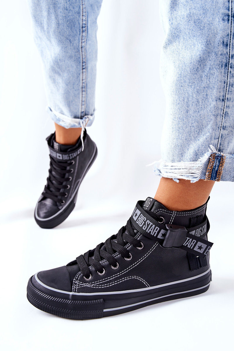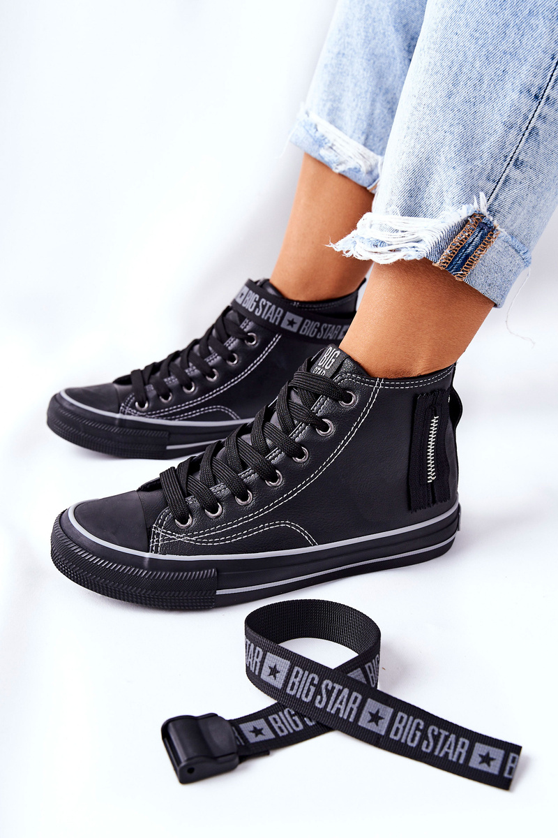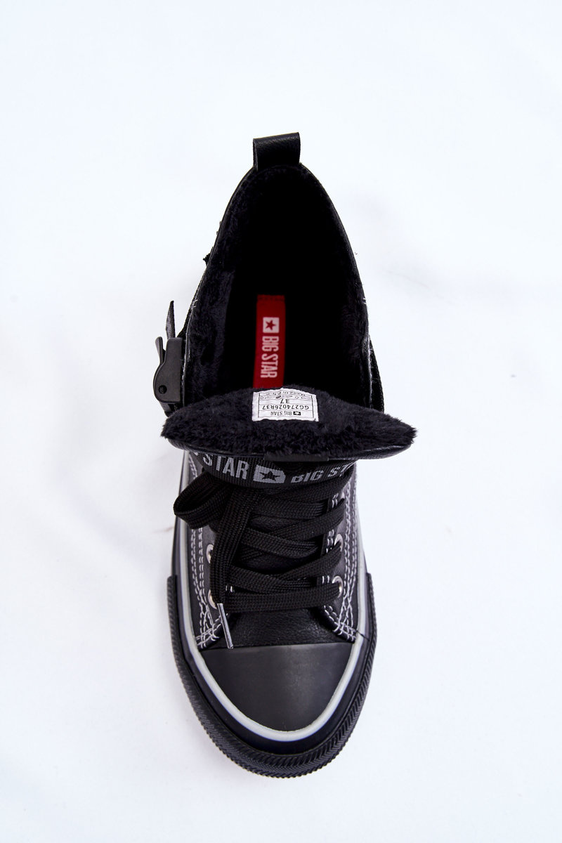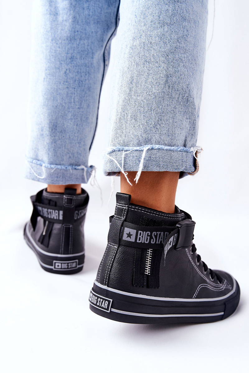 Dámske tenisky poľskej značky Big Star. Ikonické tenisky boli zdobené pásom. Vyrobené z ekologickej kože. Majú otepľovanie vo forme peknej kožušiny na dotyk, a to vďaka ktoré chladné dni nebudú také strašidelné! Na strane hornej časti je dekoratívny prvok vo forme posúvača. Nezabudnite skontrolovať našu kolekciu veľkých hviezd. Pri výbere veľkosti navrhnite tabuľku veľkosti.