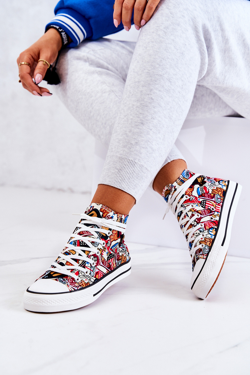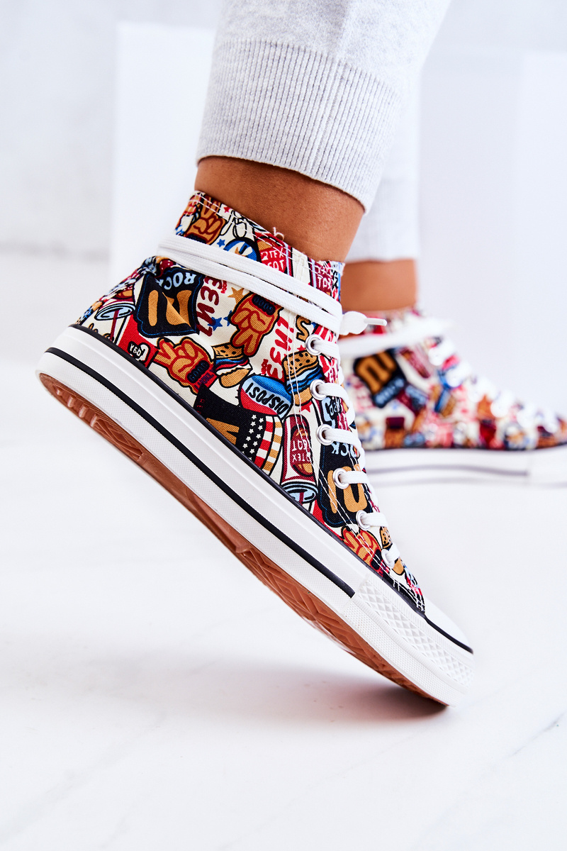 Vysoké tenisky v klasickej podobe a módny vzor. Ikonické tenisky sa zhodujú s mnohými štýlmi. Topánky sa dobre prispôsobujú tvaru chodidla, majú mäkkú, materiálovú vložku a podrážku nekrip. Model zviazaný s vyšším zvrškom. Gumový nos. Nezabudnite skontrolovať celú našu zbierku ženských tenisiek. Pri výbere veľkosti navrhnite tabuľku veľkosti.