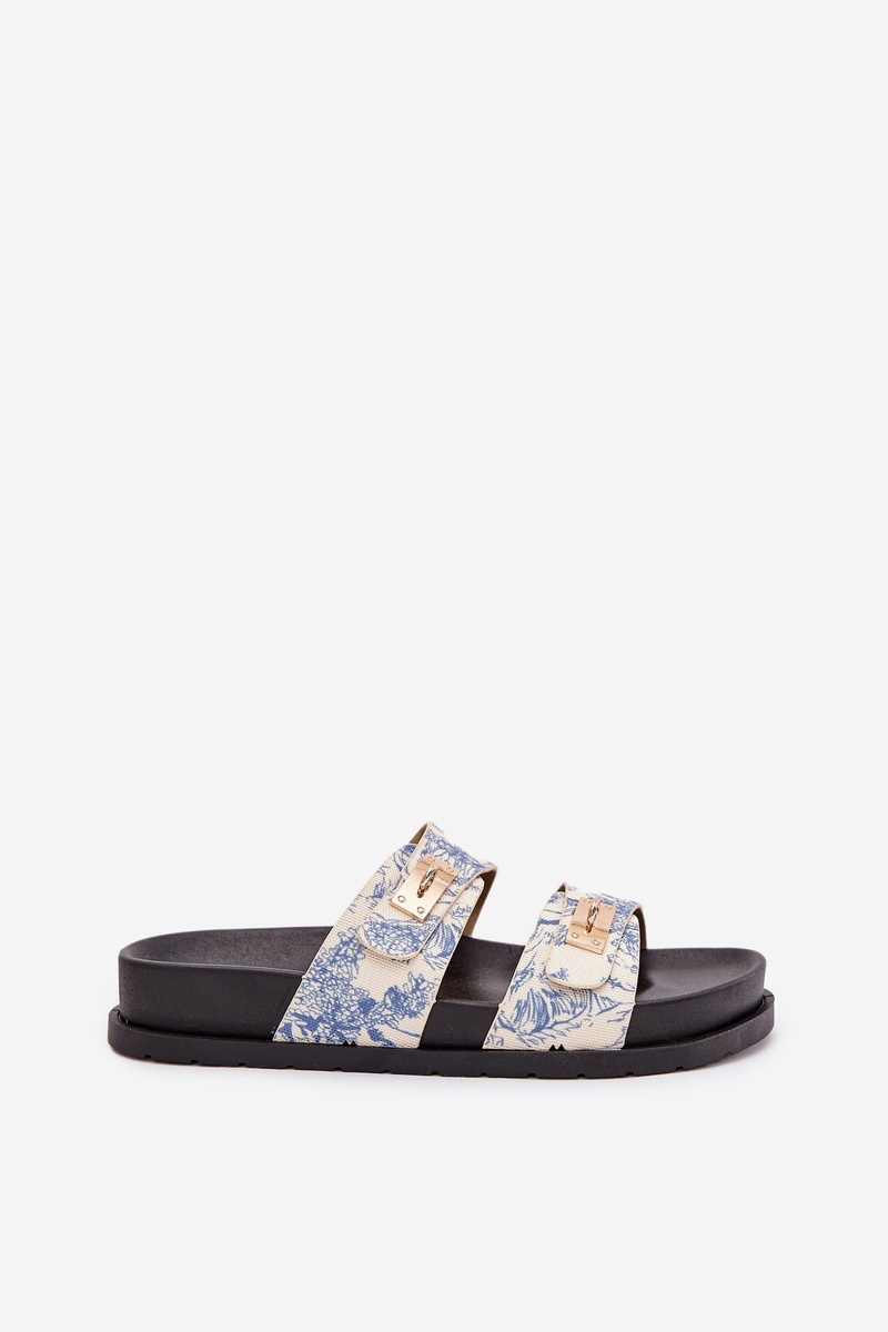 Vzorkované dámske papuče vyrobené z textilného materiálu, umiestnené na platforme, sú štýlovou ponukou na letné dni. Model sa vyznačuje dvoma pásmi zdobenými zlatými prvkami, ktoré im dodávajú výnimočný charakter. Ideálne pre každodenné štýlovanie, skvele sa hodia k šatám, sukniam alebo šortkám a zabezpečujú módny vzhľad. Při výběru velikosti se řiďte tabulkou velikostí.