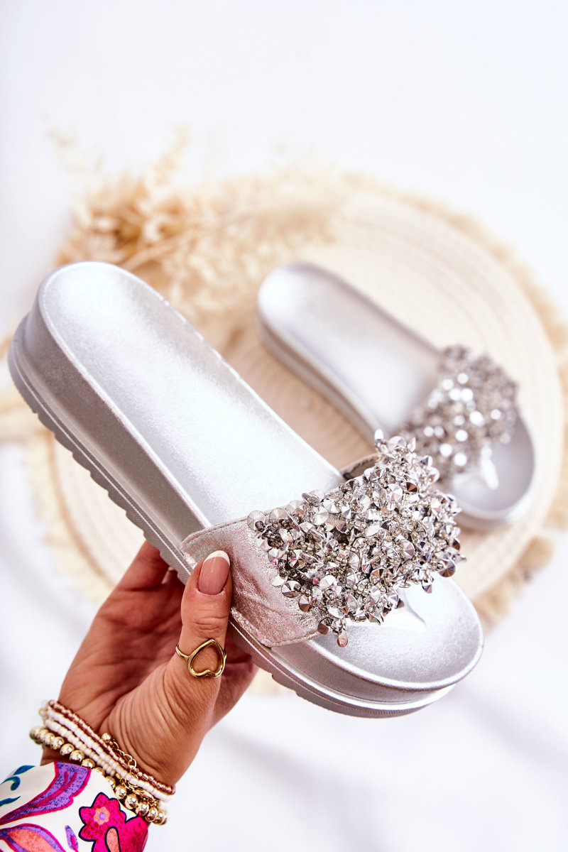 Žabky dámskej platformy s dekoráciami striebornej alminy