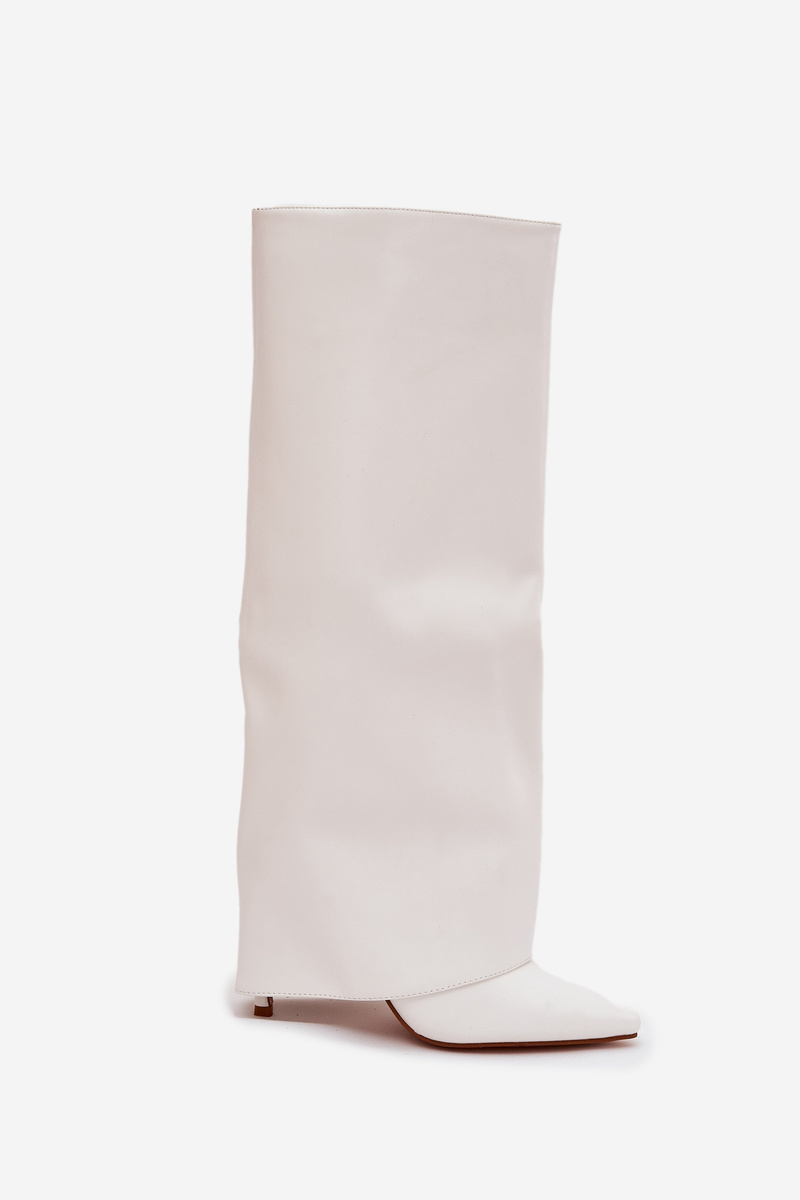Zateplené čižmy na ihlovom podpätku s prehnutým zvrškom biele Tamonia