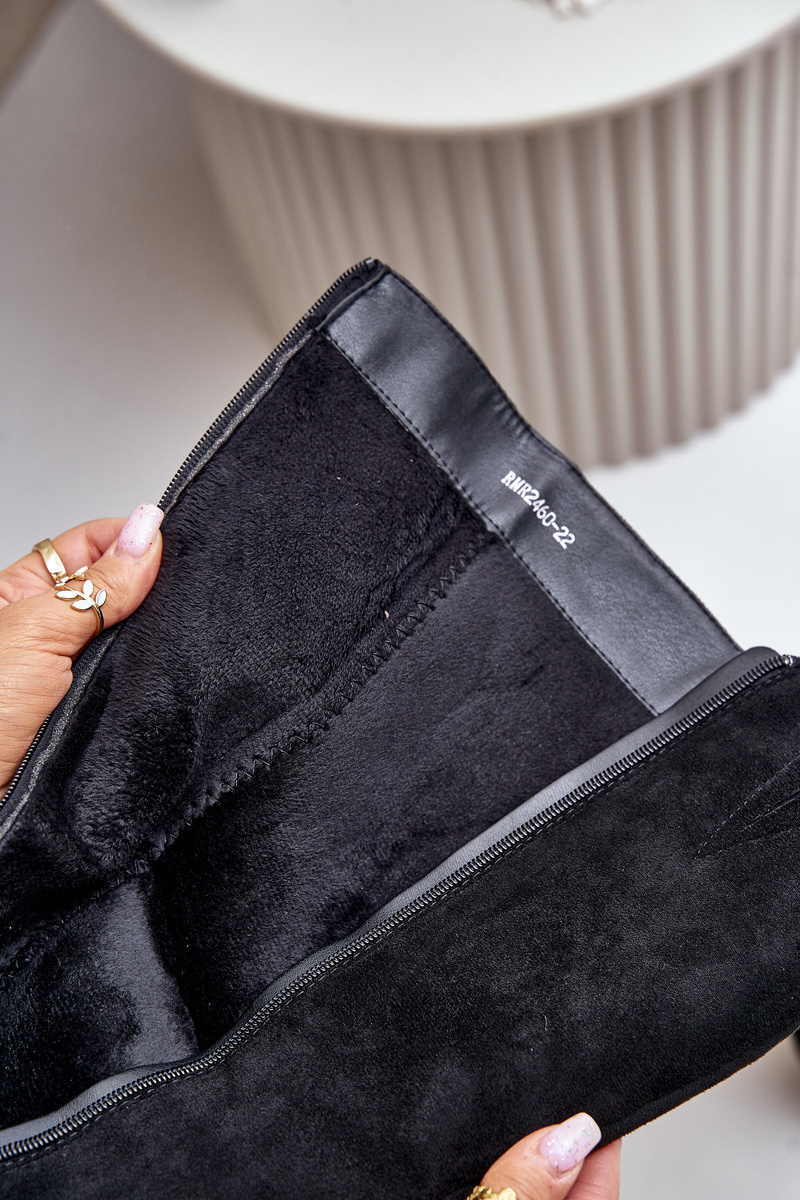 Zateplené čižmy na podpätku eko semišové nad koleno čierne Leamirael