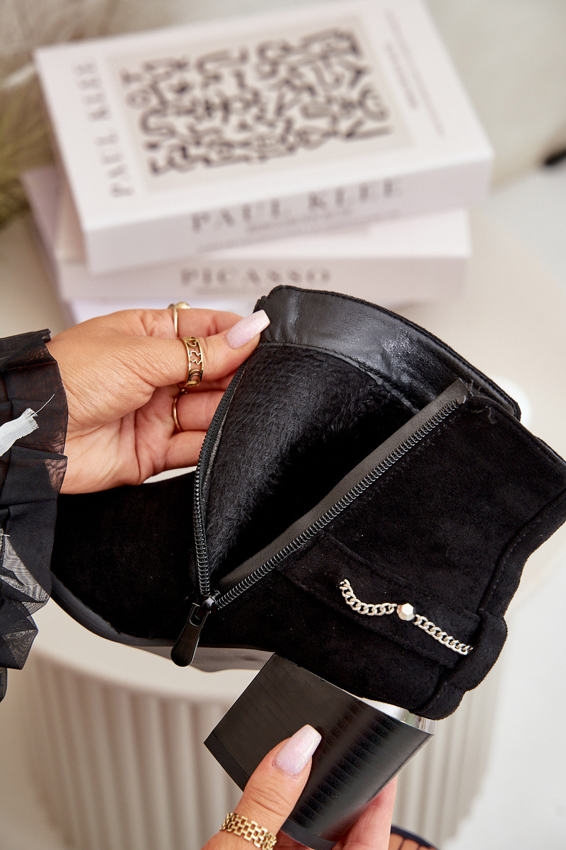 Zateplené Dámske Čižmy Na Opätku S Ťažkým Eko semišové Čierne Hanalen