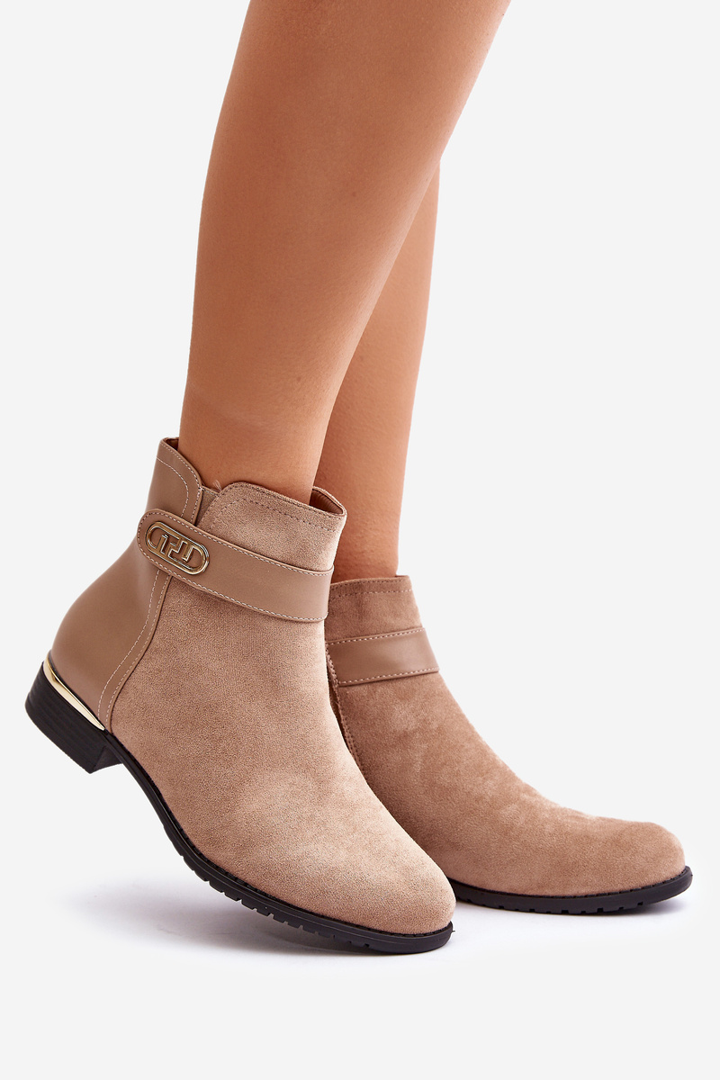 Zateplené dámske čižmy na plochom podpätku so zlatým detailom béžové Ravasira