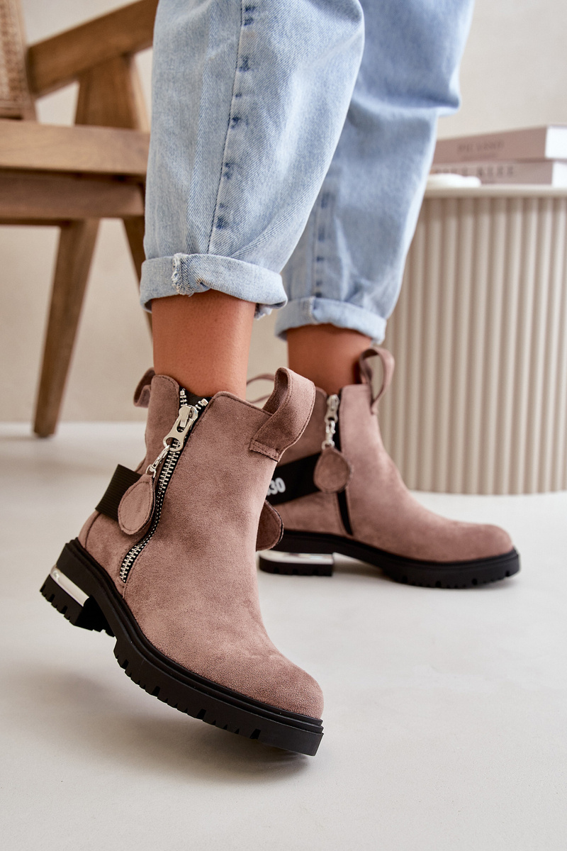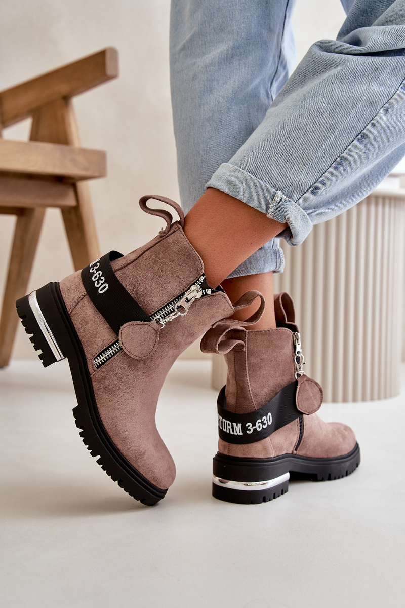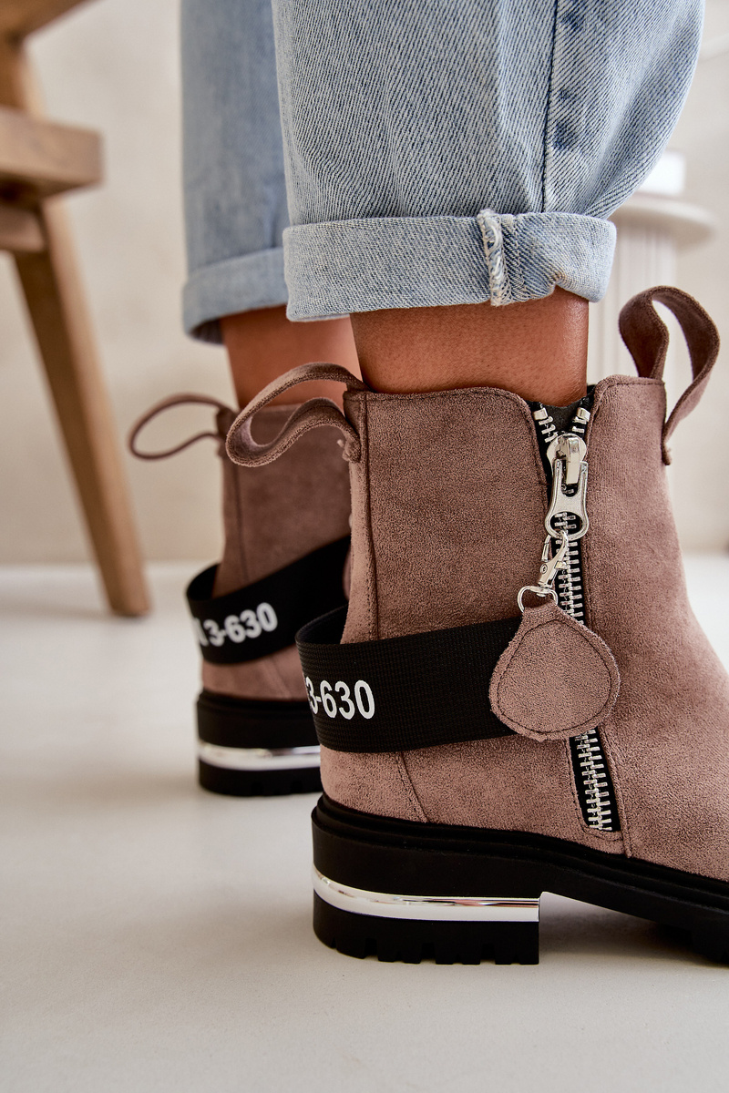 Dámske čižmy sú vyrobené z ekologického semišu. Interiér je zateplený príjemným obuvníckym fleecem. Pásik priložený k topánkam je odnímateľný. Čižmy majú dva zipsy, z ktorých jeden nie je odnímateľný. Tieto topánky sú umiestnené na plochom podpätku so zrkadlovým vložením a podrážkou s dezénom. Skvelý model pre mnoho jesenných štýlov! Při výběru velikosti se řiďte tabulkou velikostí.
