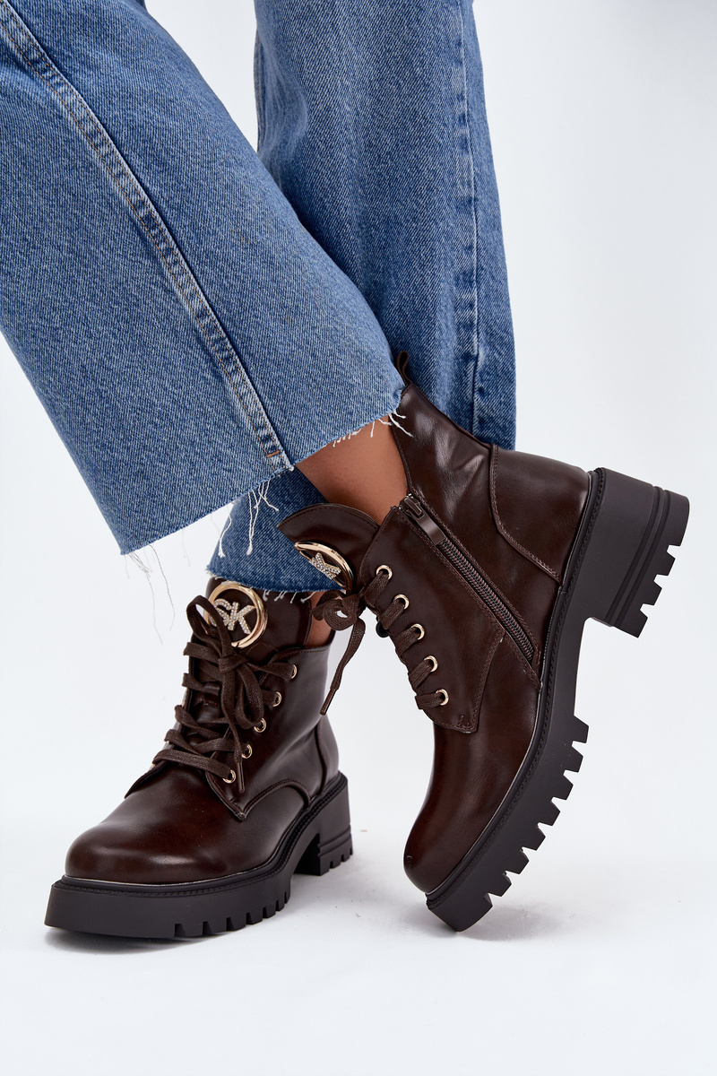 Dámske čižmy z eko kože sú kombináciou elegancie a pohodlia na chladnejšie dni. Umiestnené na plochom podpätku a platforme, poskytujú stabilitu a komfort. Model so šnurovaním a zipsom umožňuje ľahké prispôsobenie nohám a zateplenie obuvníckym materiálom zaručuje teplo aj v mrazivých dňoch. Dekoratívny detail na jazyku dodáva čižmám eleganciu a zdôrazňuje ich jedinečný charakter. Perfektné pre jesenné a zimné štýly, budú skvelou voľbou na každú príležitosť. Pri výbere veľkosti prosím vychádzajte z tabuľky veľkostí. Při výběru velikosti se řiďte tabulkou velikostí.
