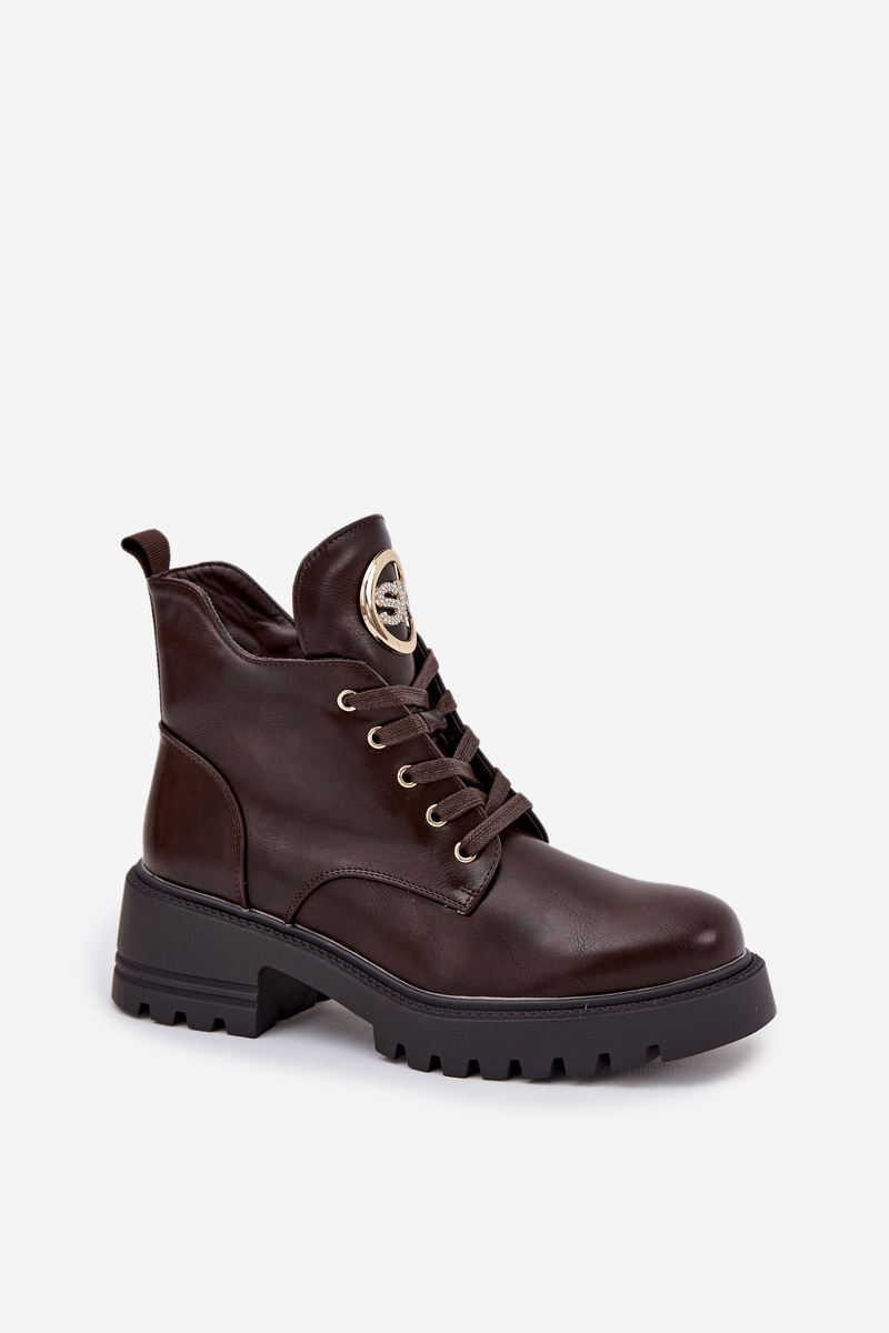 Zateplené dámske čižmy so zlatým detailom čokoládové Kavirae