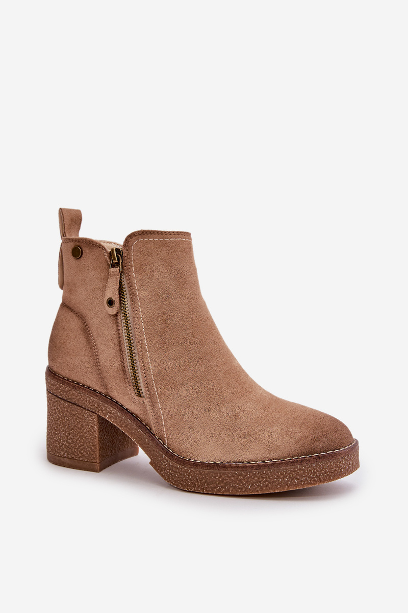 Zateplené dámske členkové topánky na opätku z eko semišu béžové Velarilla