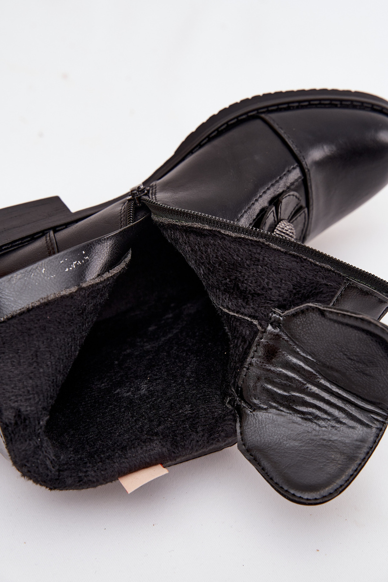 Zateplené dámske členkové topánky na plochom podpätku s ozdobnými kvetmi čierne Pravienne