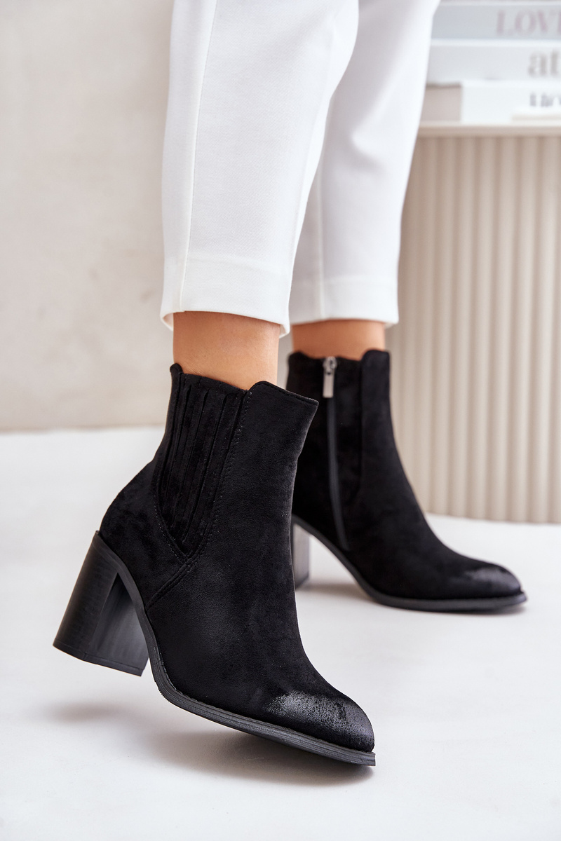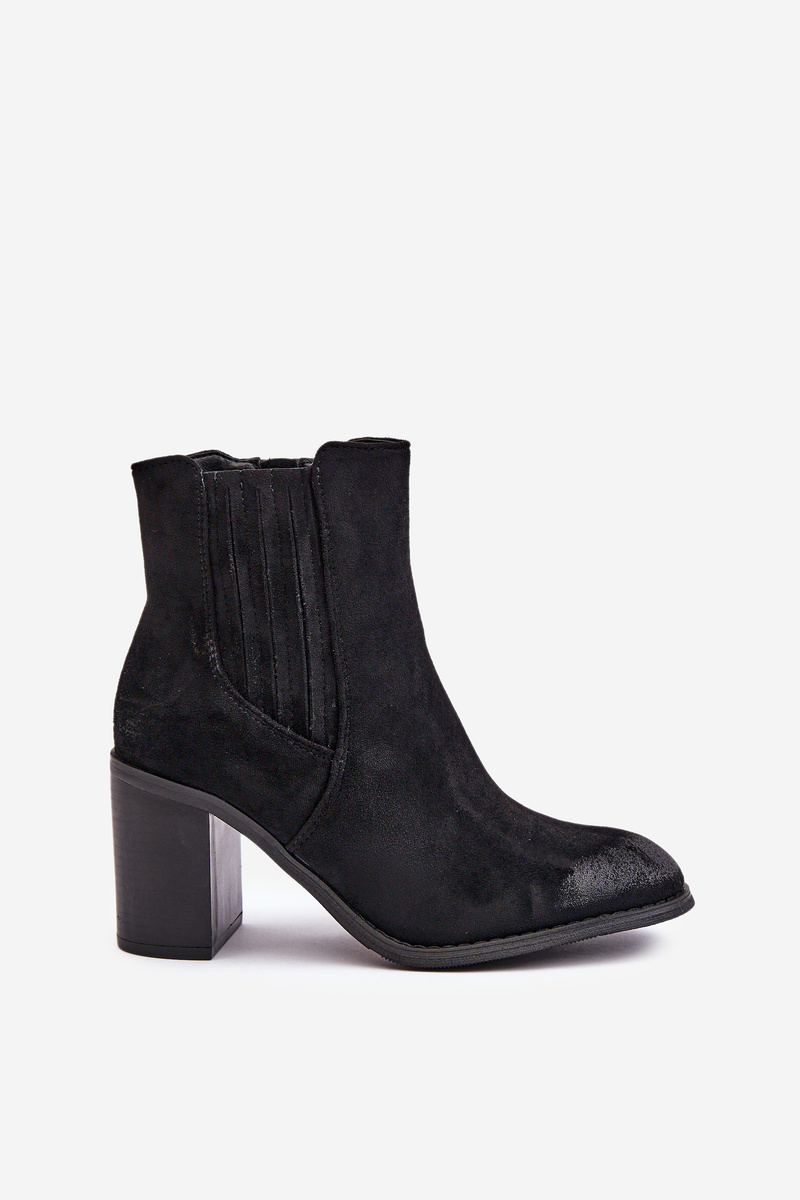 Zateplené dámske členkové topánky na podpätku eko semiš čierne Gudra