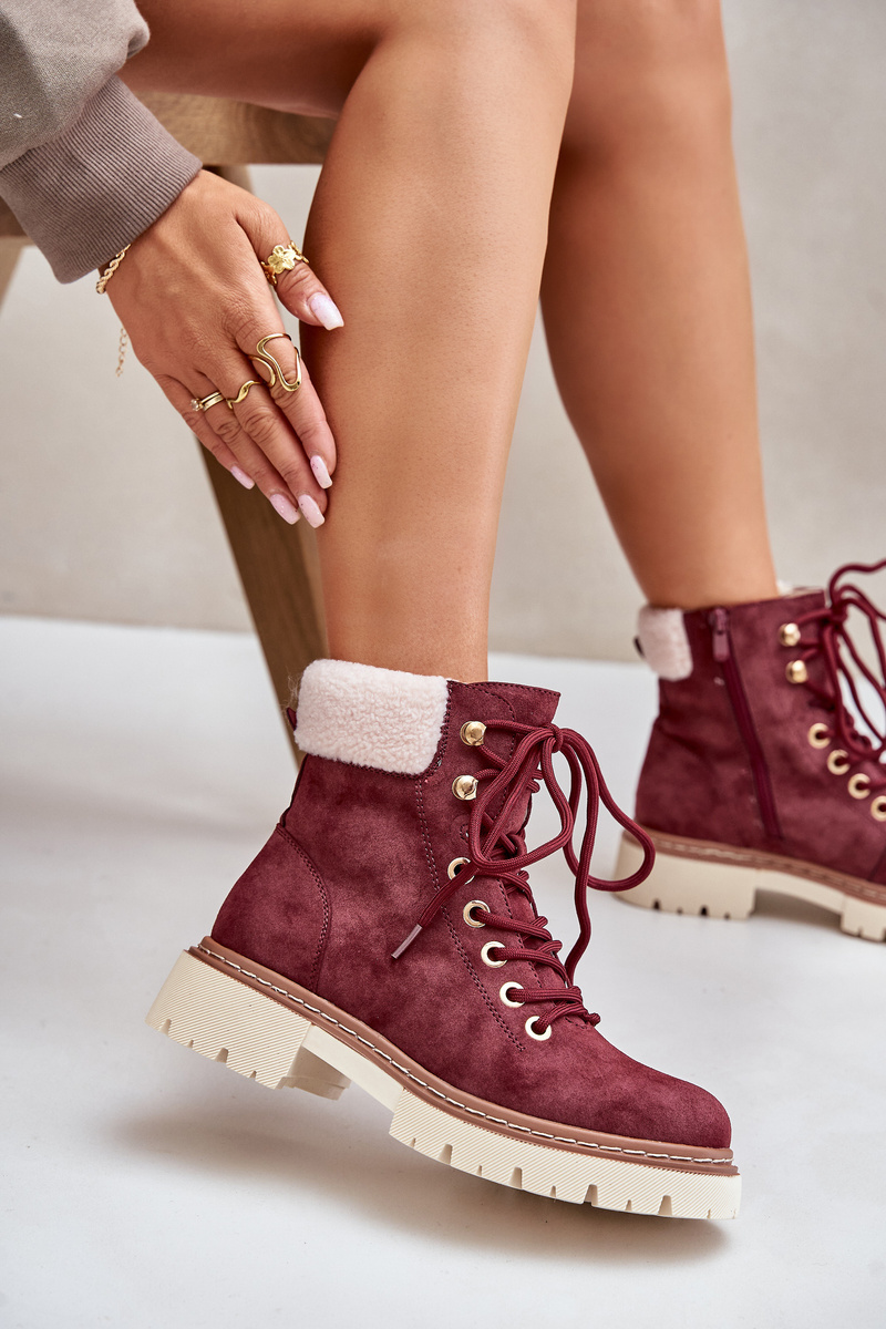 Zateplené dámske členkové topánky na zips bordové Ferelia
