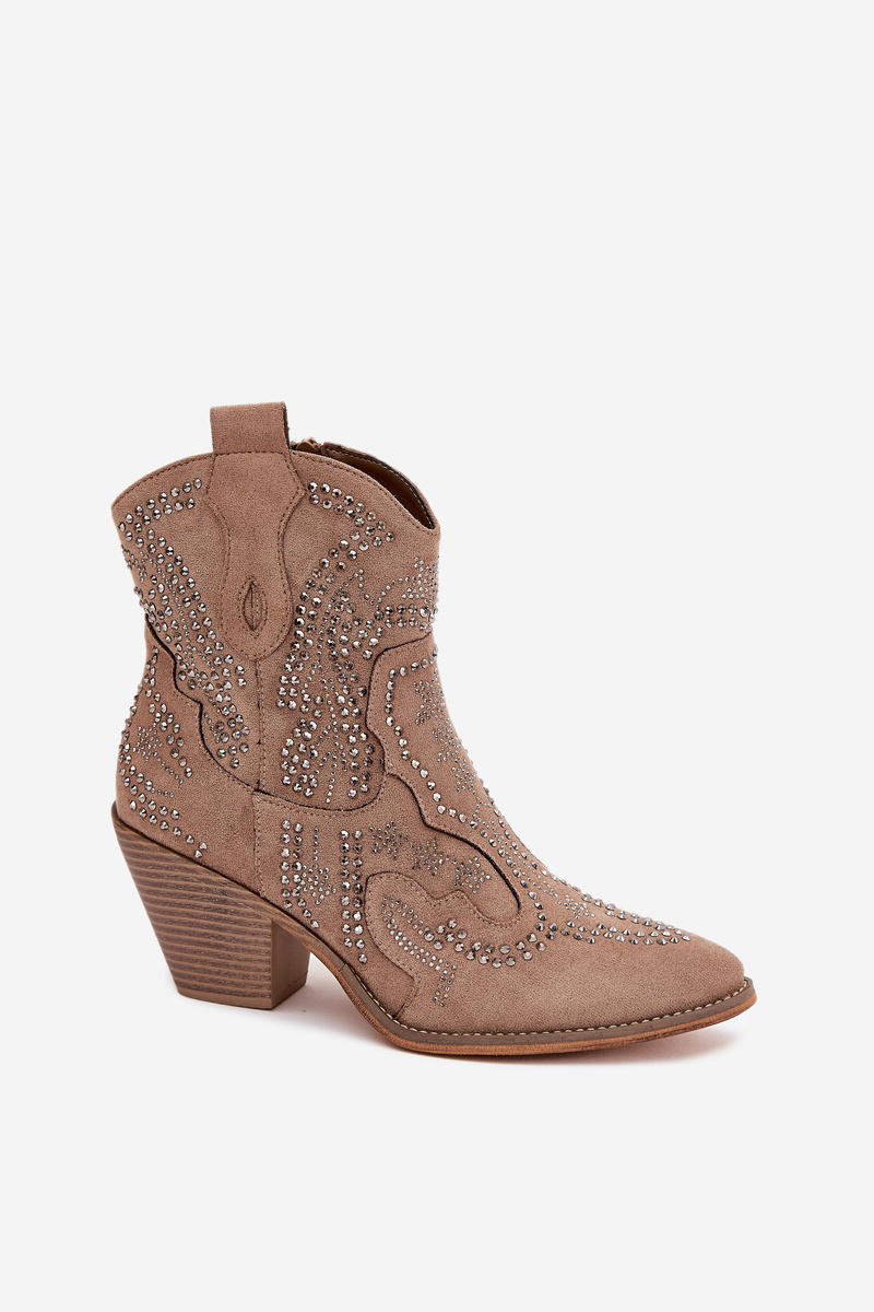 Zateplené Dámske Kotníkové Topánky Kovbojky S Ozdobou Béžové Lelira