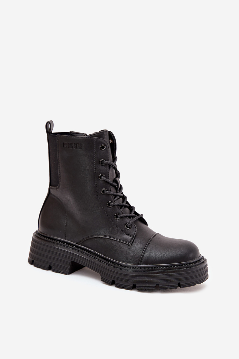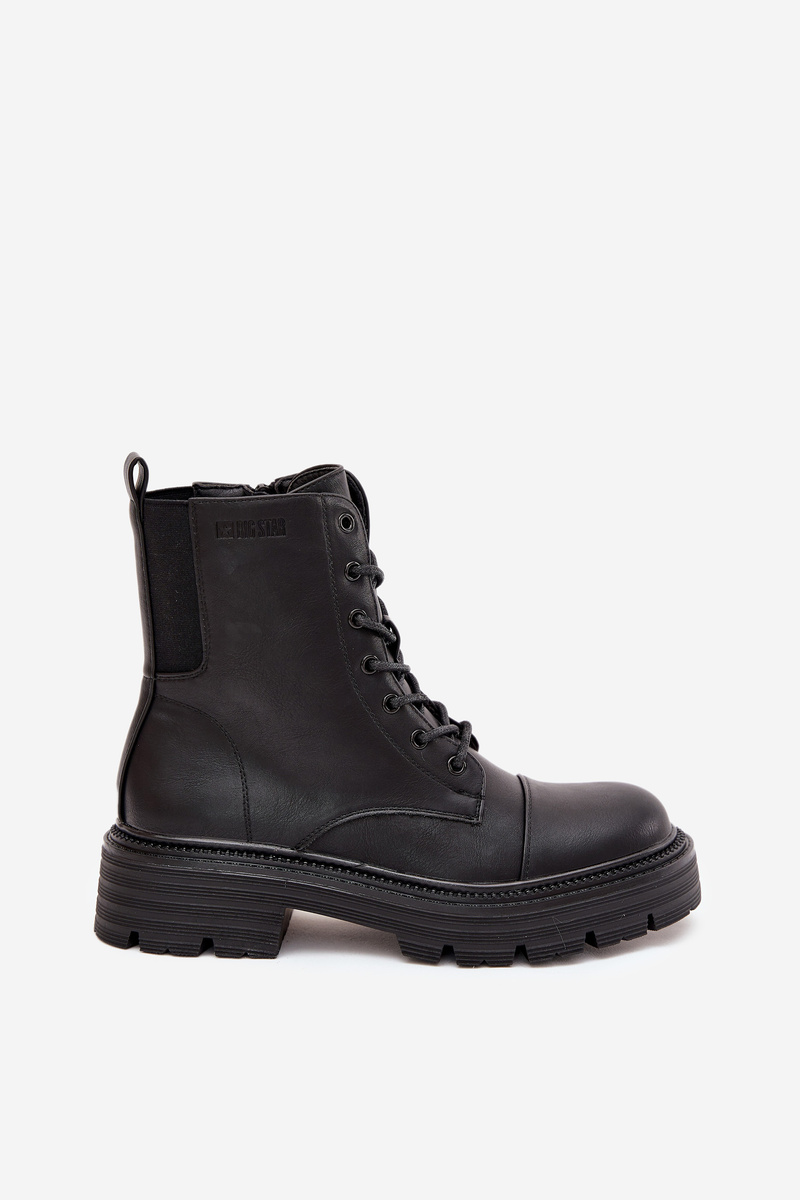 Delovne čizme blagovne znamke Big Star, izdelane iz ekološke usnje, so stilna izbira za hladnejše dni. Model je zaprt z zadrgo in vezalkami, kar zagotavlja popolno prileganje nogi. Opremljene s oblačilnim flisom zagotavljajo toplotno udobje. Postavljene na platformo in ploski peti, združujejo udobje z modnim dizajnom. Na vrhu višine se nahaja okrasna zanka s sponko, ki jim daje izraznost. Popolne za vsakdanje in mestne sloge. Pri izbiri velikosti si oglejte tabelo velikosti.