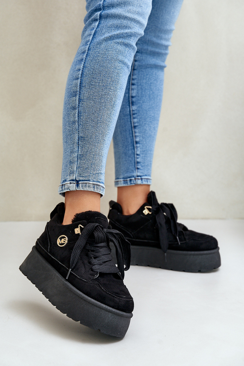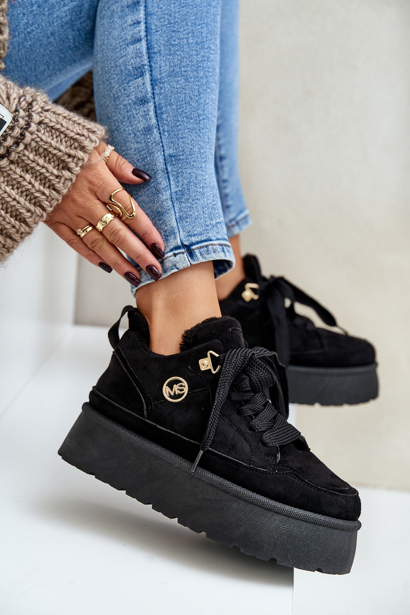 Zateplené dámske sneakersy na platforme čierne Velarisea