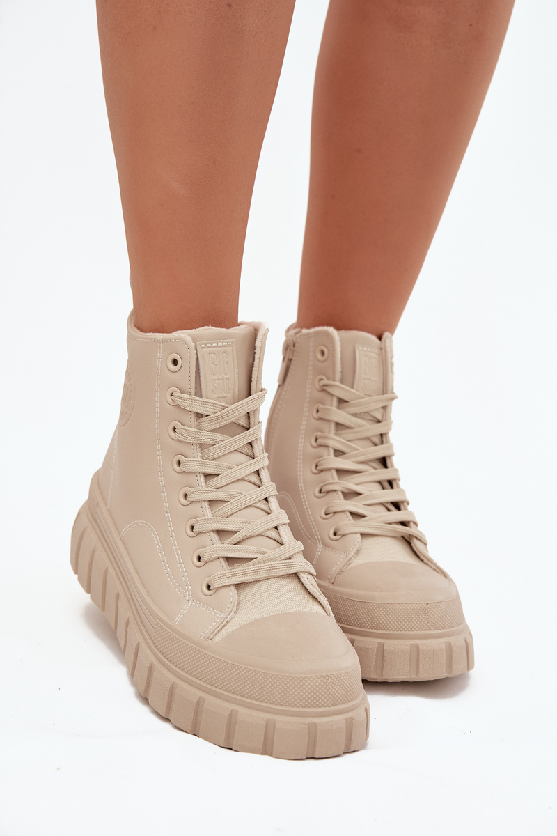 Zateplené dámske tenisky na platforme z ekokože Big Star SS274535 béžové
