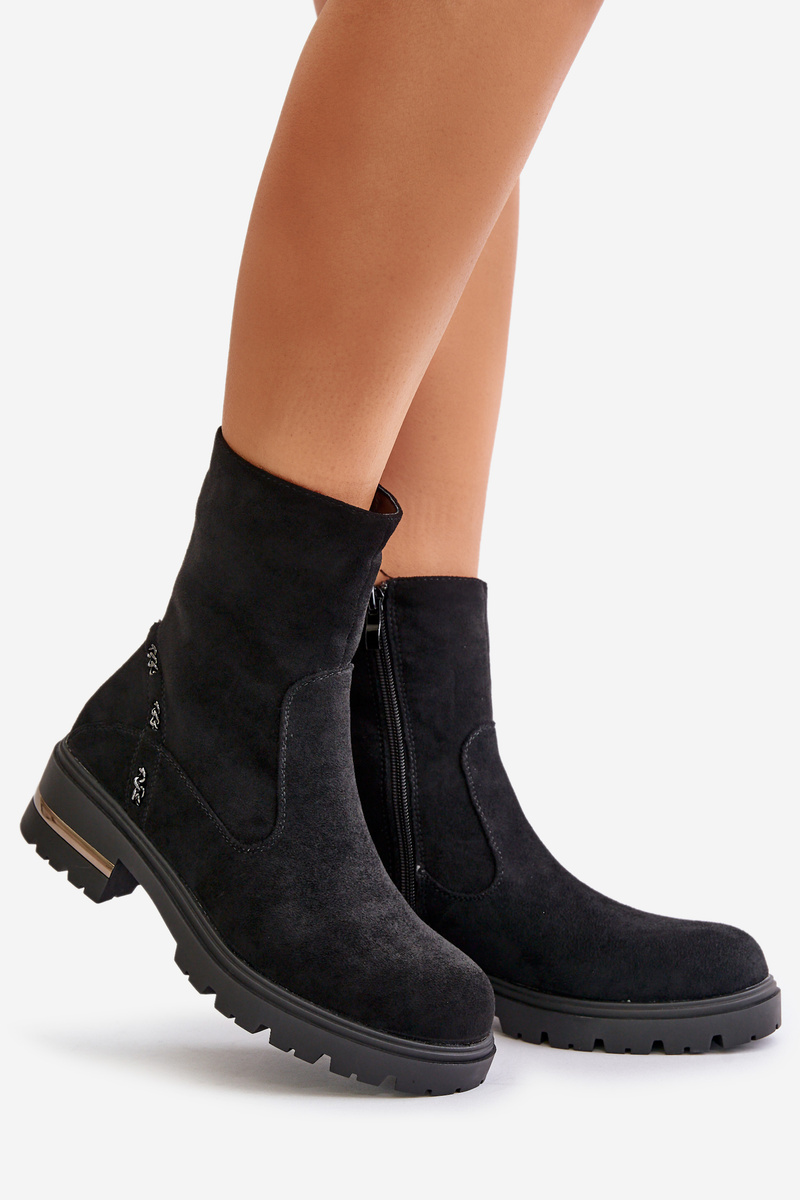Zateplené dámske topánky z eko semišu na zips čierne Narilie
