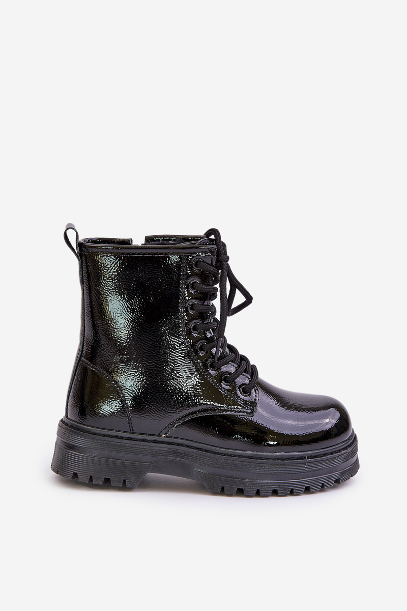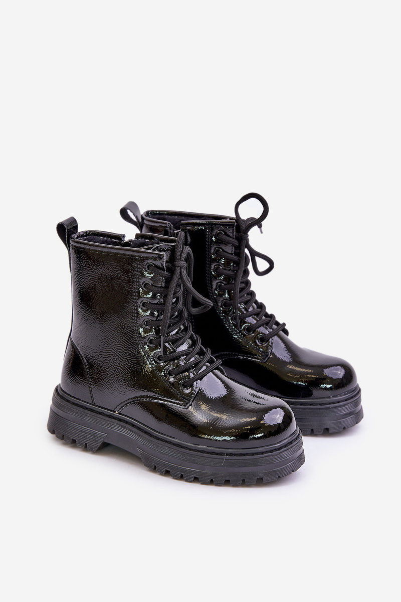 Zateplené dievčenské čižmy lakované na zips čierne Novita