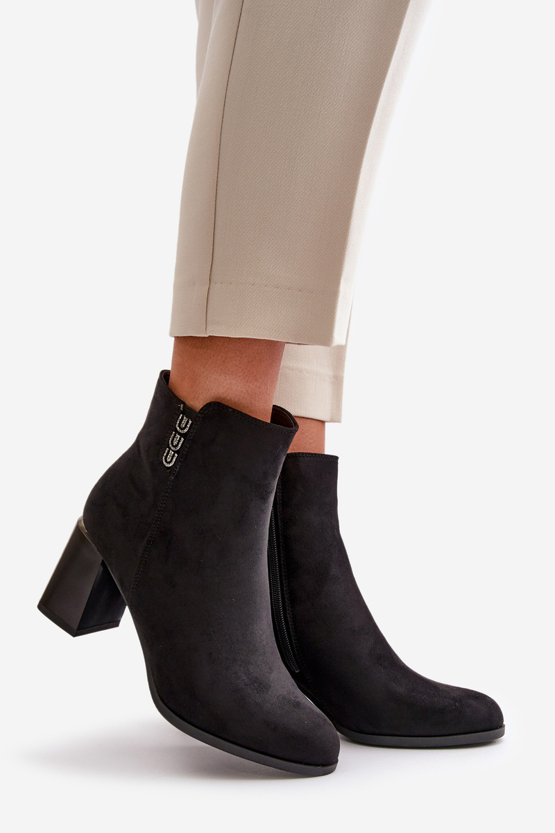 Zateplené Eko Semišové Dámske Čižmy Na Podpätku So Zipsom Čierne Erillia