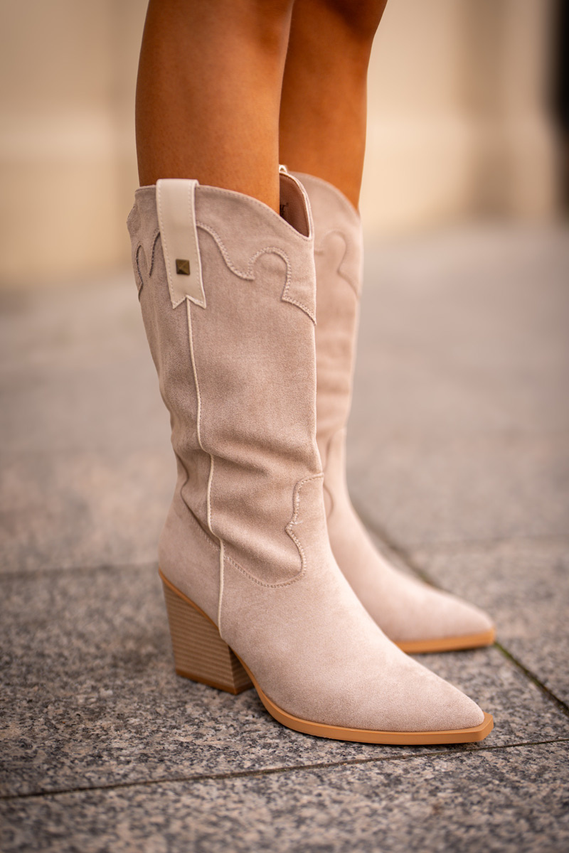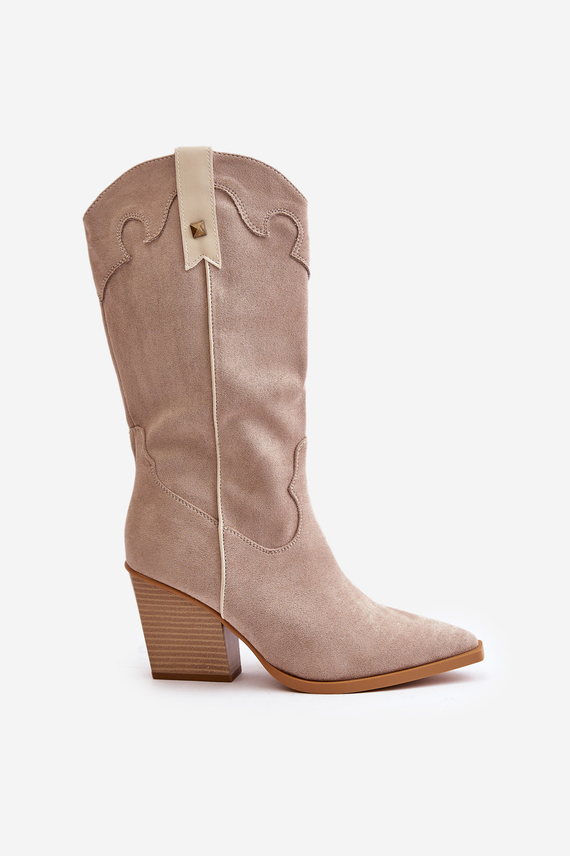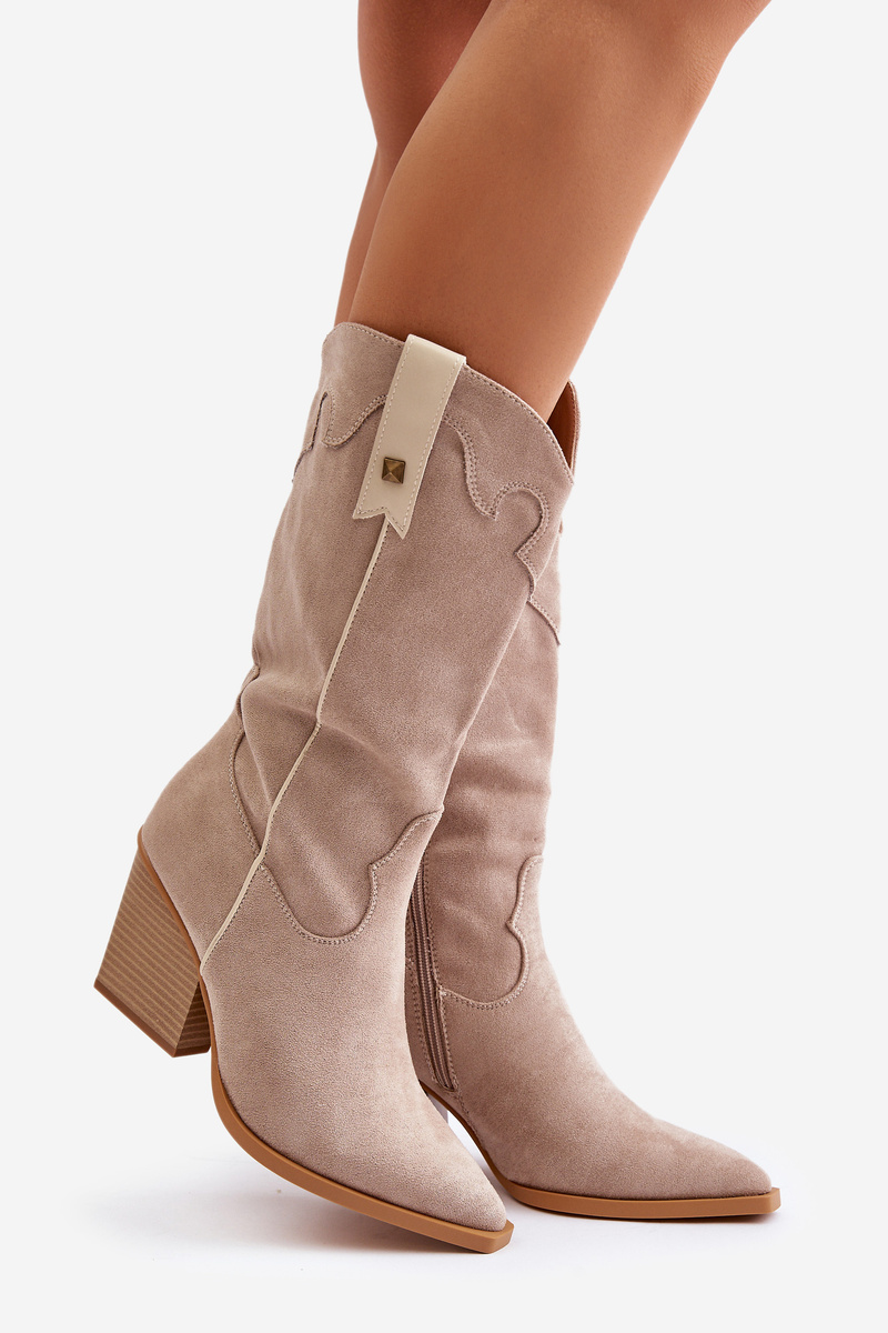 Zateplené Kovbojské Čižmy Na Opätku Eko Semišové Béžové Hanivin
