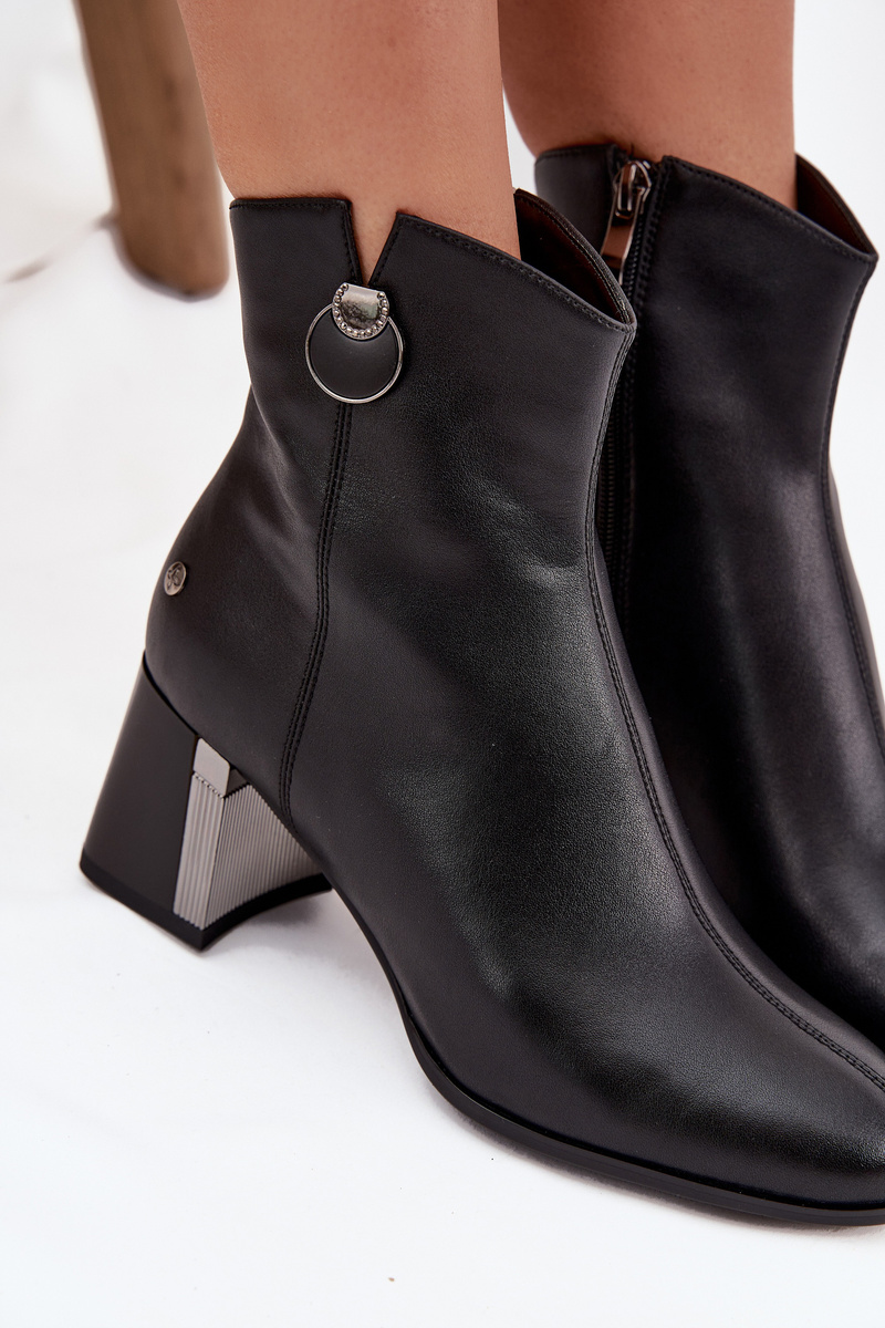 Zateplené kožené čižmy na päte Maciejka K7203-04 Čierne